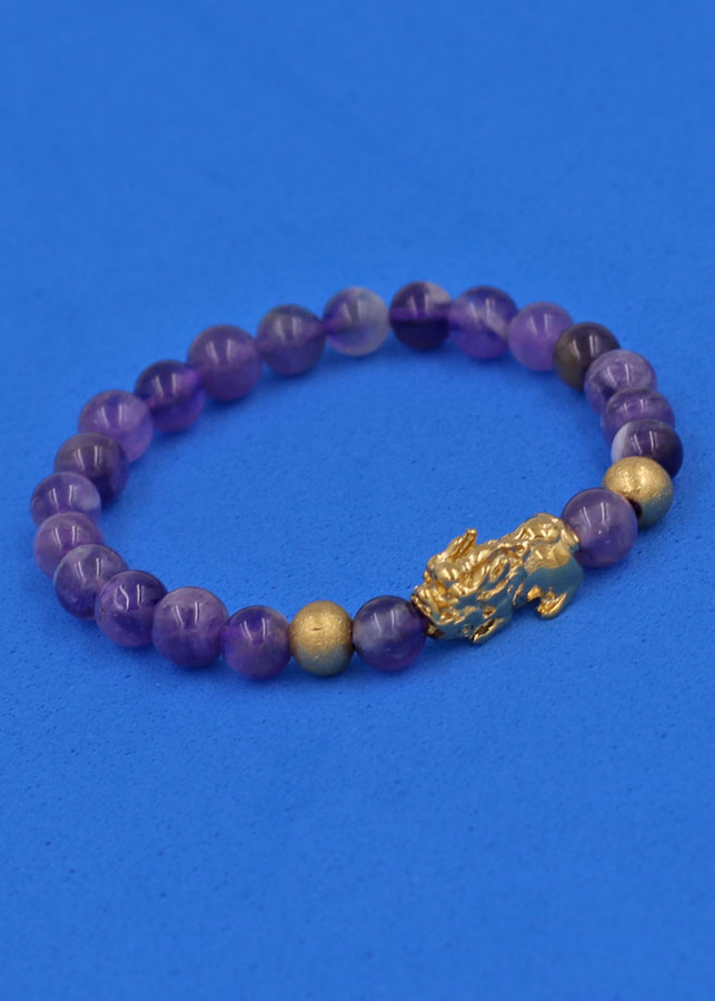 ✨Vòng đeo tay Thạch Anh Tím Than 6 ly cẩn Tỳ Hưu inox vàng VTAITTHHBV6 - hợp mệnh Hỏa, mệnh Thổ