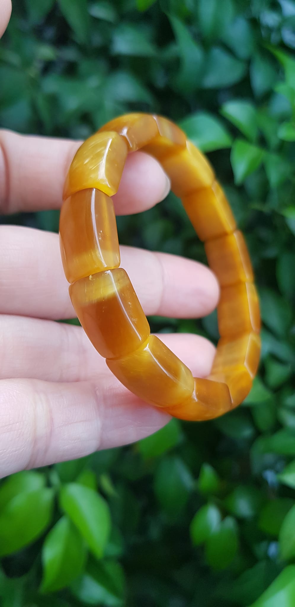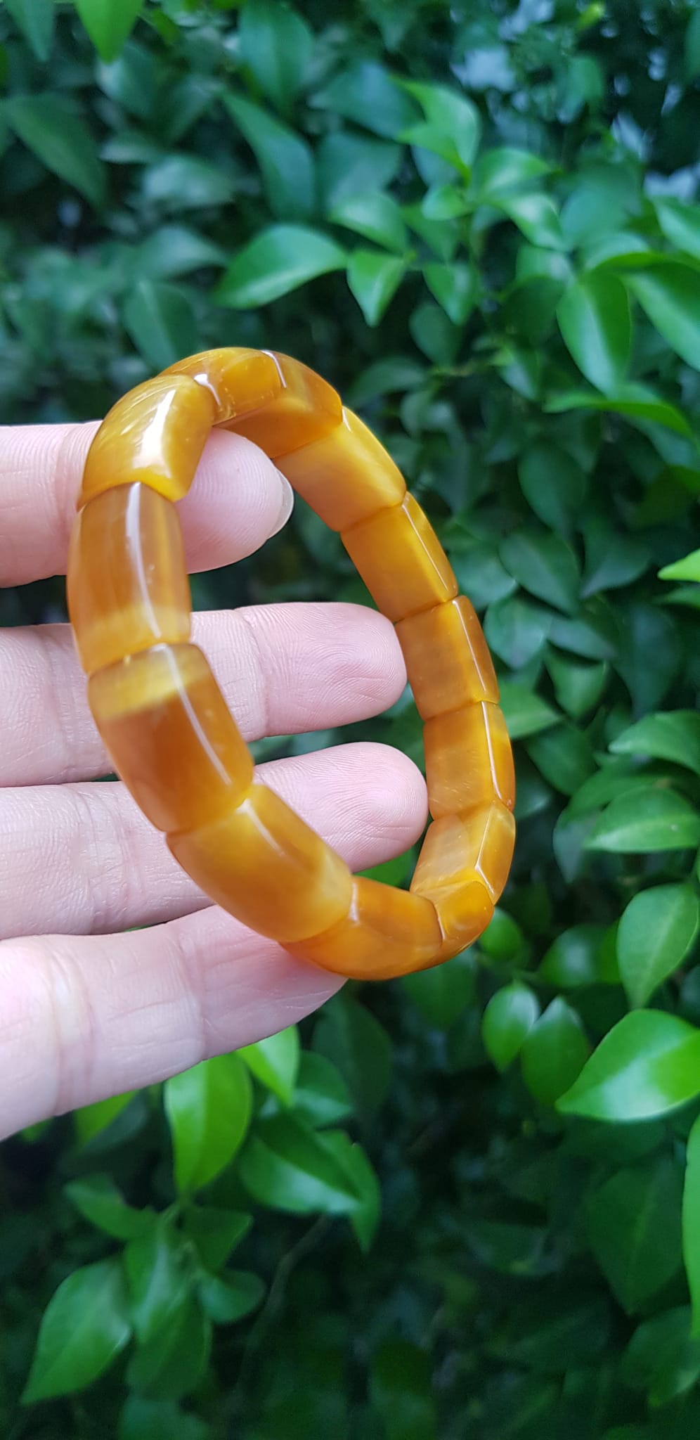 Vòng tay lu thống đá mắt hổ vàng nâu hợp mệnh kim và mệnh thổ