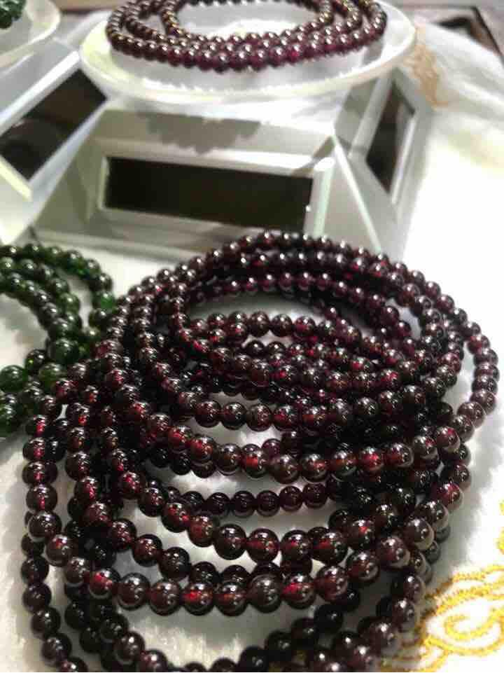 Vòng Tay Chuỗi Nữ Đá Garnet Đỏ Rượu quấn 3 vòng size hạt 4mm các Chị Em Phụ Nữ đeo lên tay ạ