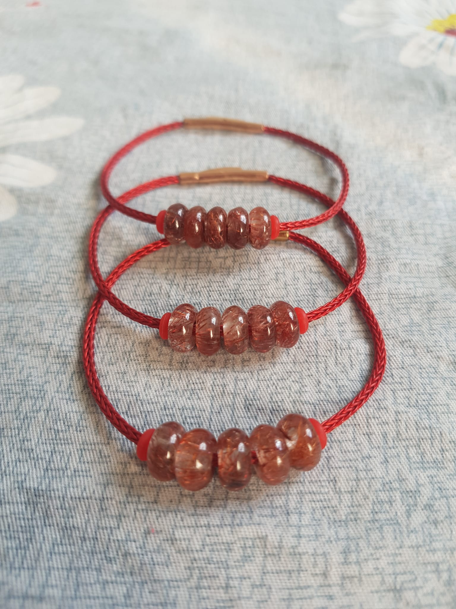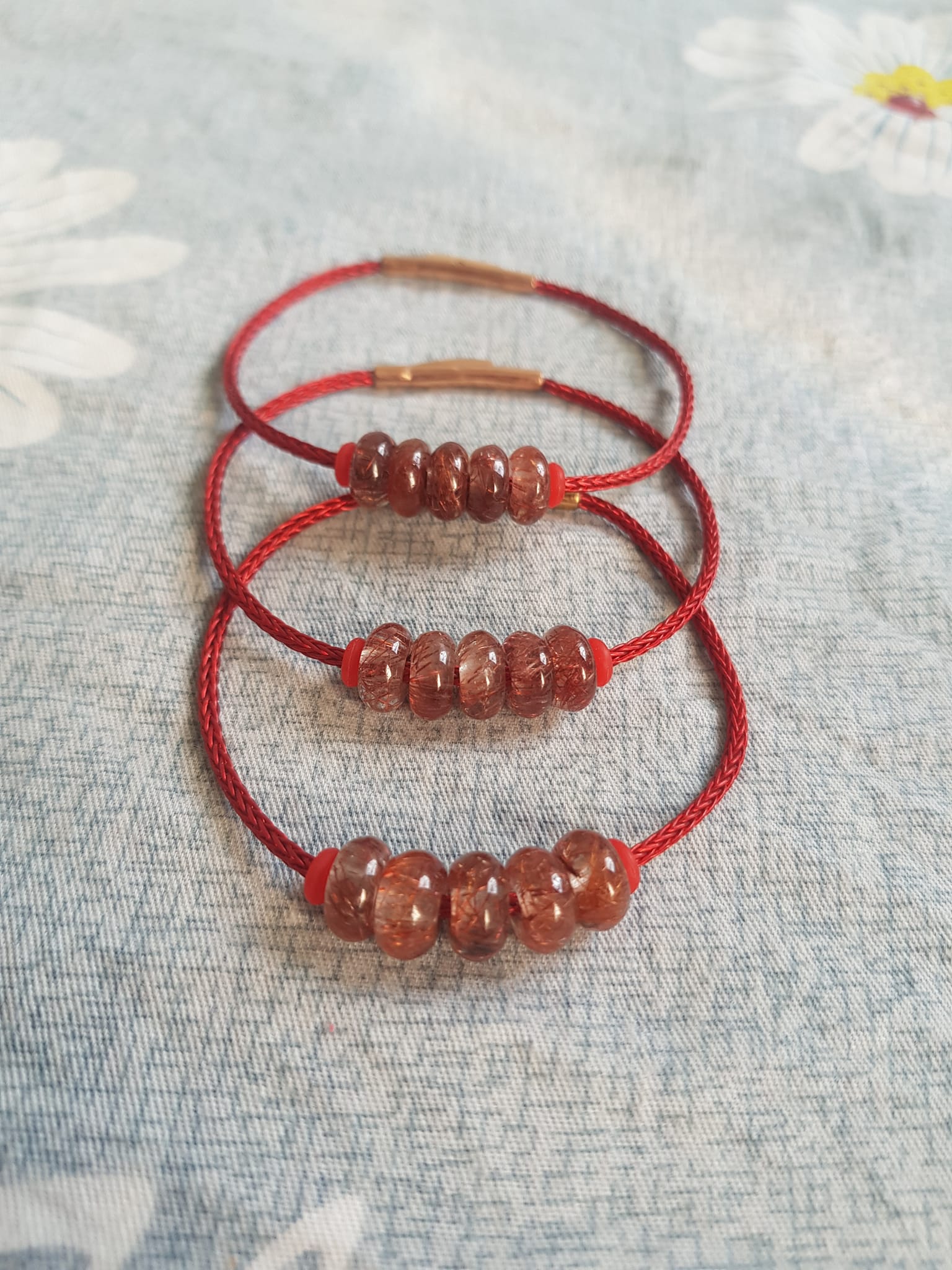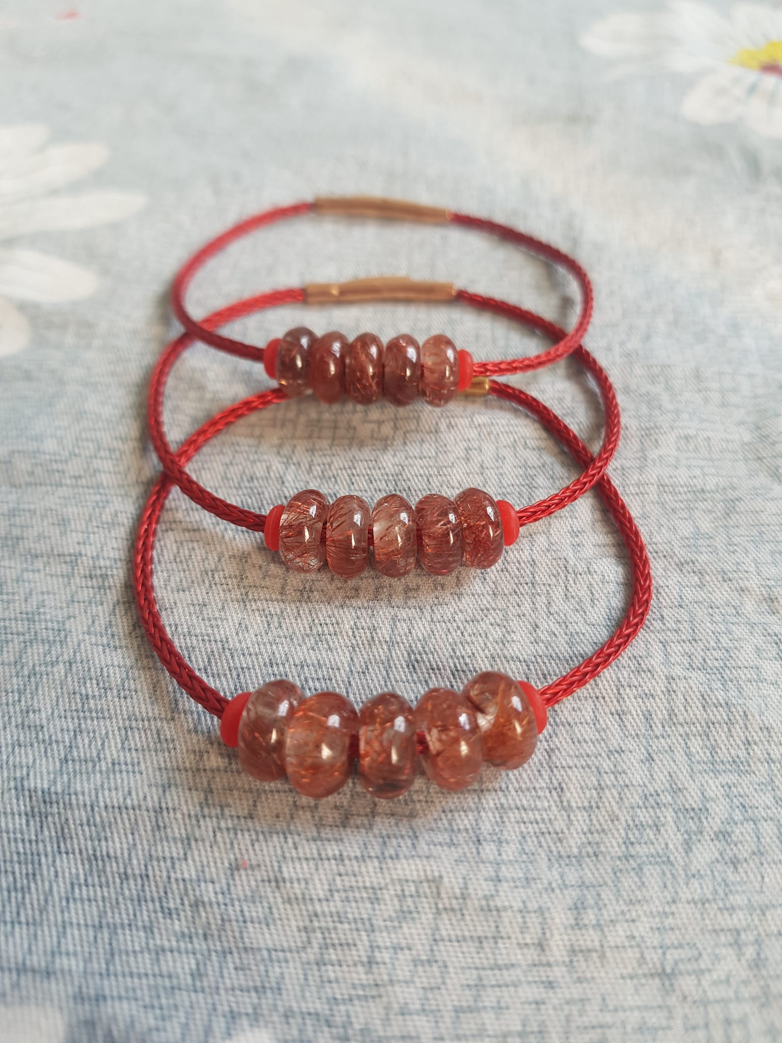 ✨Vòng Tay 5 đồng tiền may mắn kiểu đá thạch anh tóc đỏ tự nhiên dây đỏ tài lộc nữ mệnh hỏa mệnh thổ đeo xinh đẹp ạ