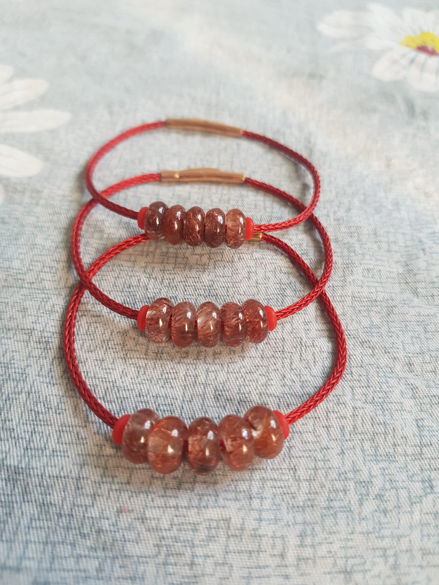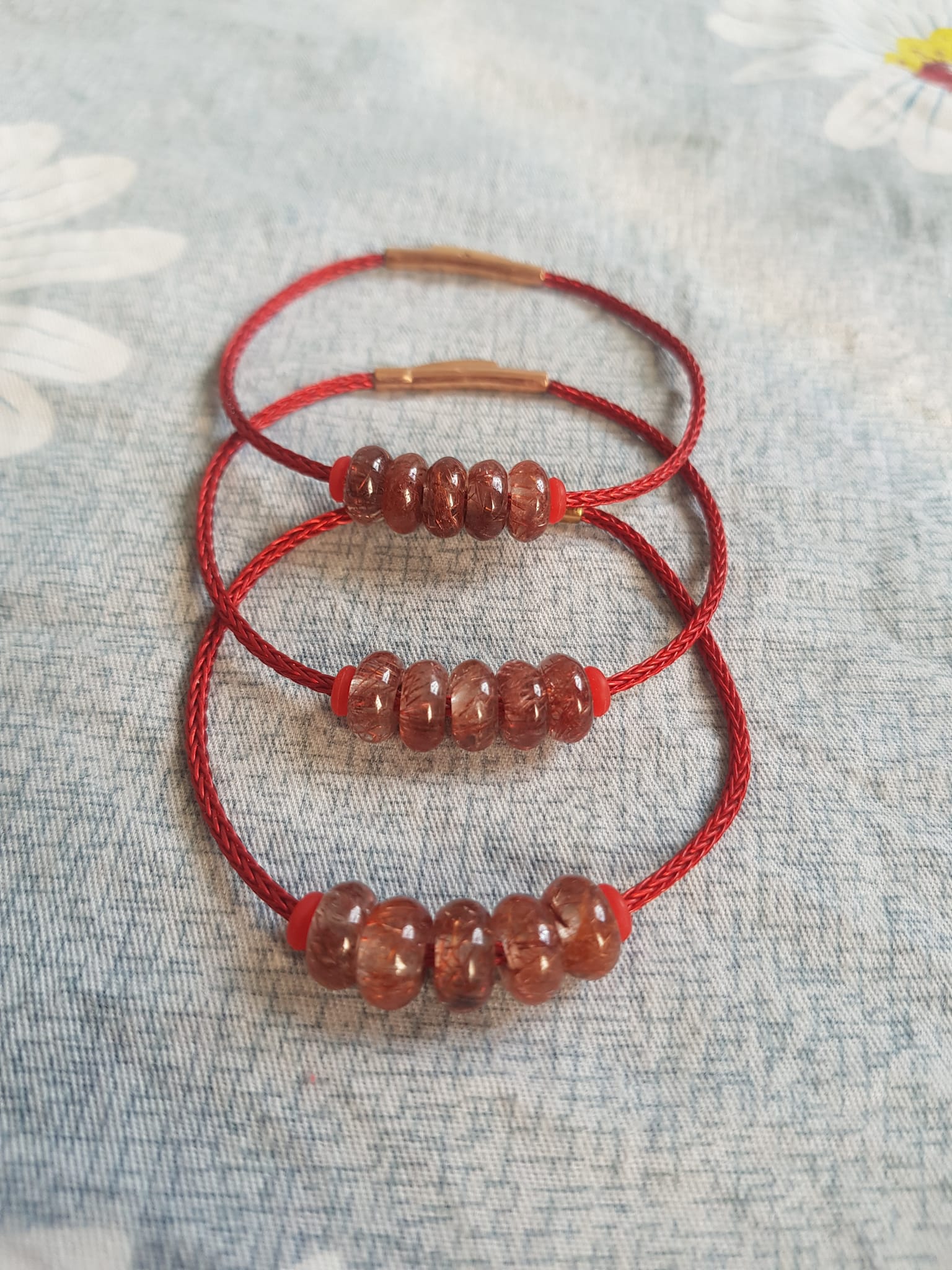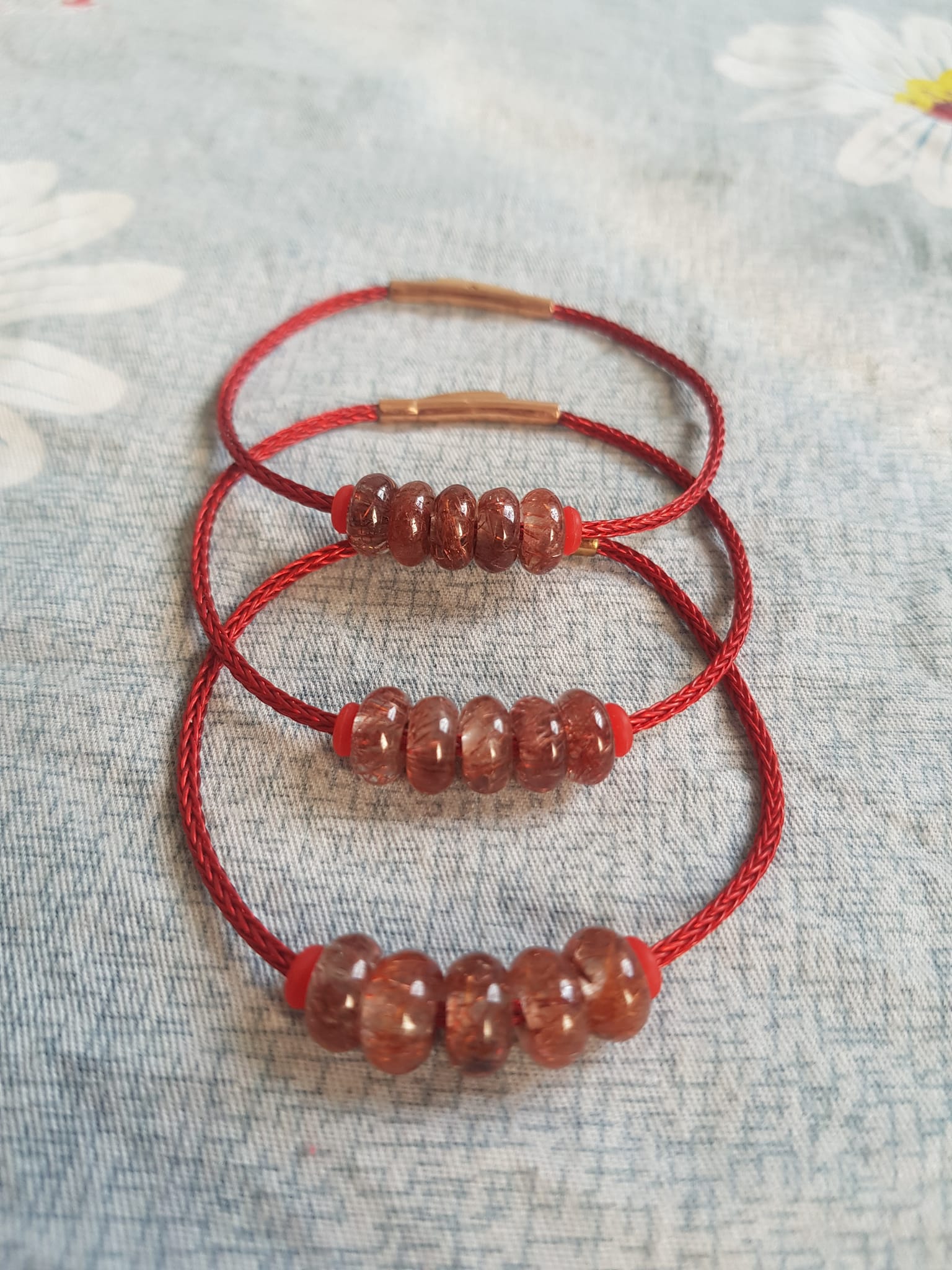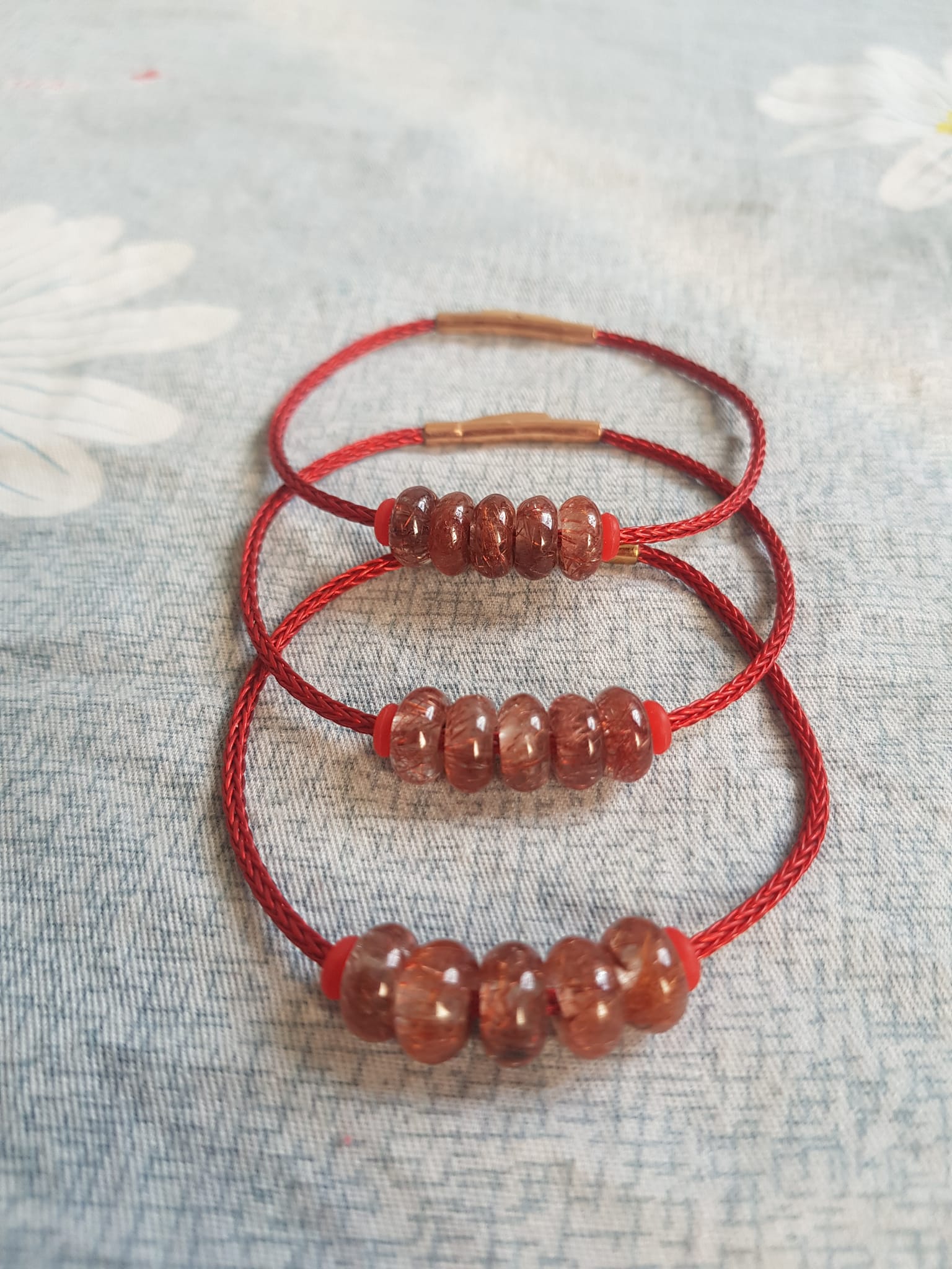 ✨Vòng Tay 5 đồng tiền may mắn kiểu đá thạch anh tóc đỏ tự nhiên dây đỏ tài lộc nữ mệnh hỏa mệnh thổ đeo xinh đẹp ạ