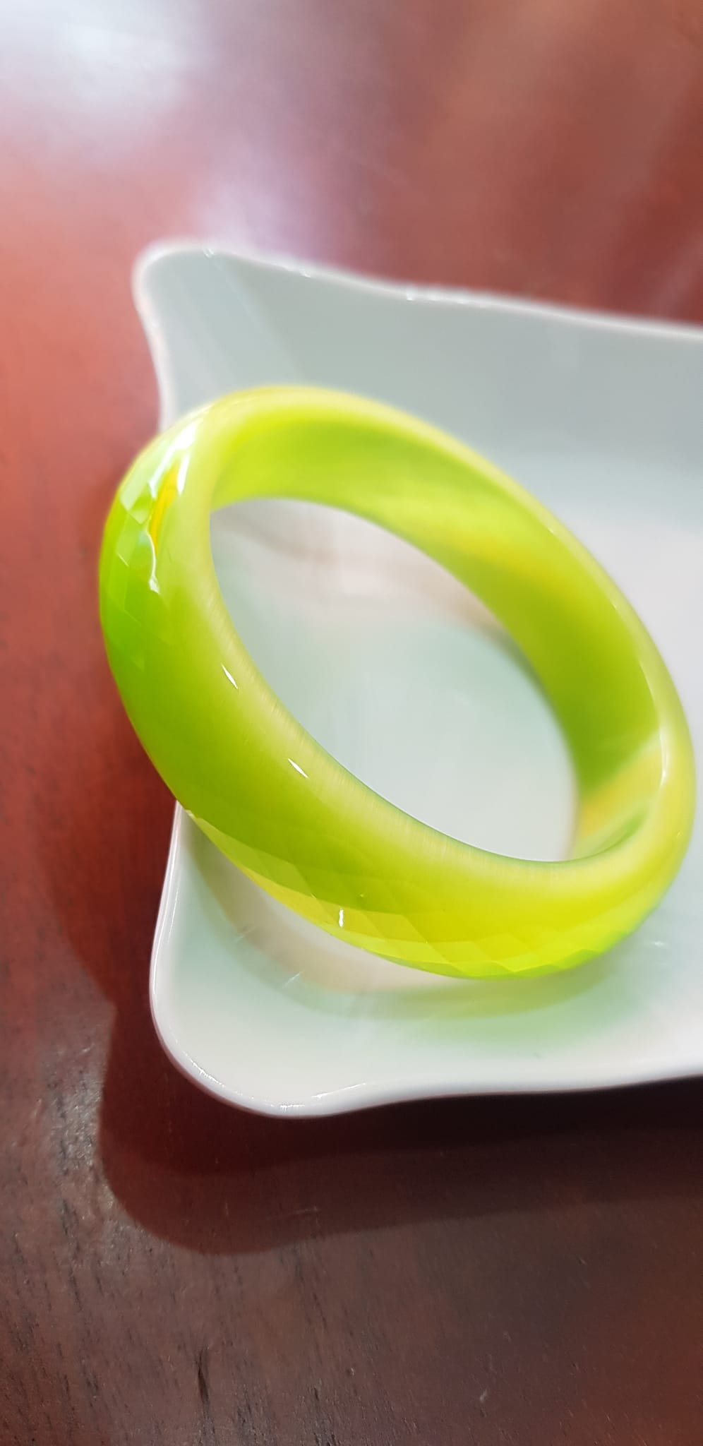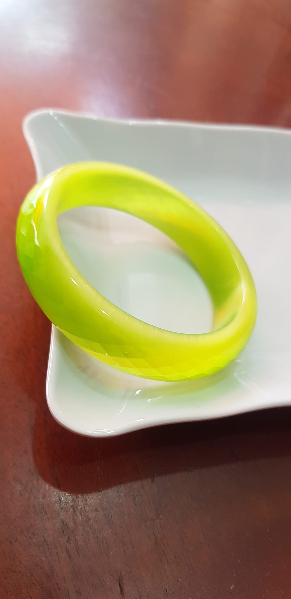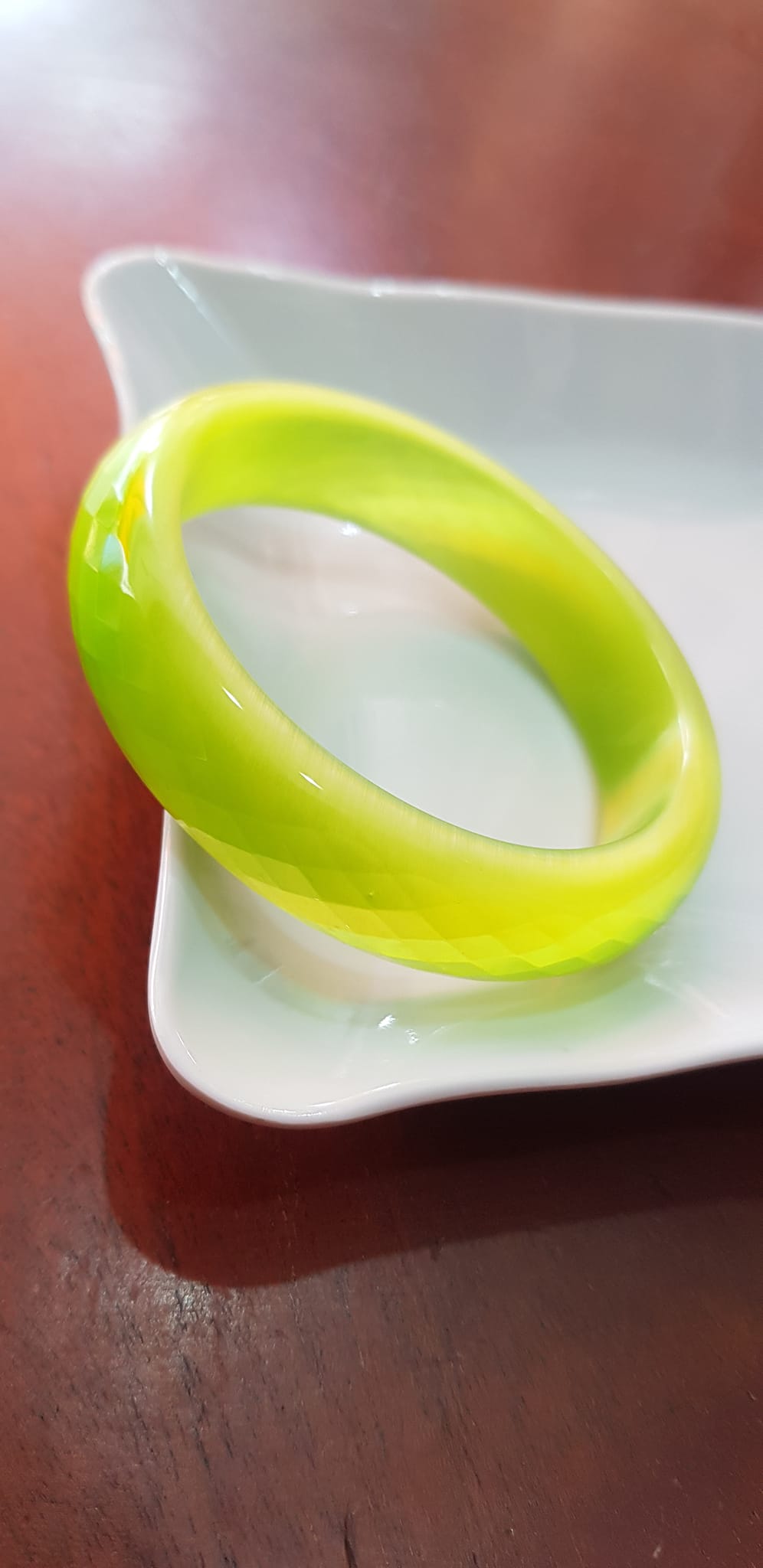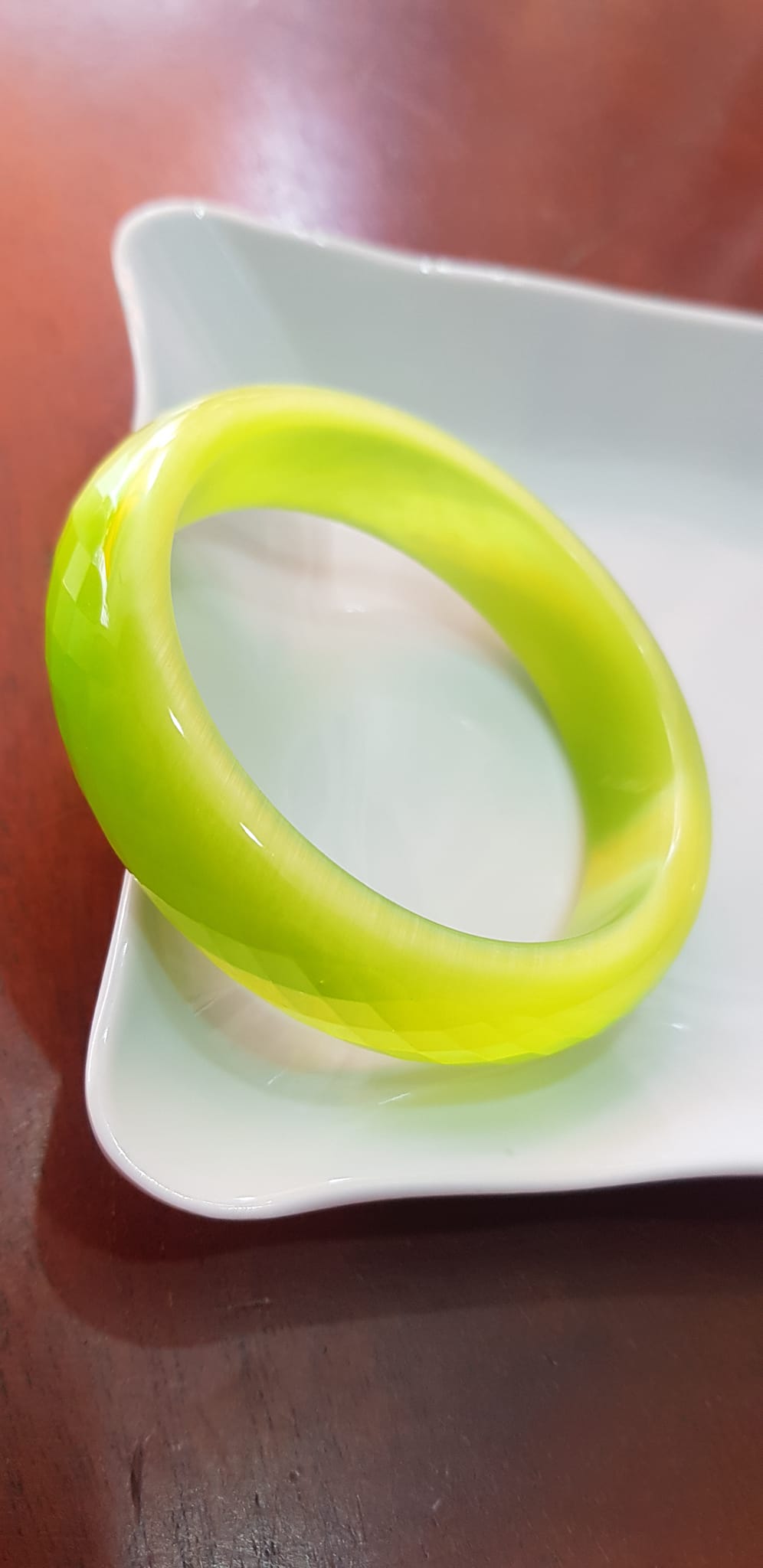 Vòng tay bản hẹ đá mắt mèo giác xanh đợt chuối tươi sáng mới đẹp lạ vòng Ni 55mm Cao 15mm dầy 7mm