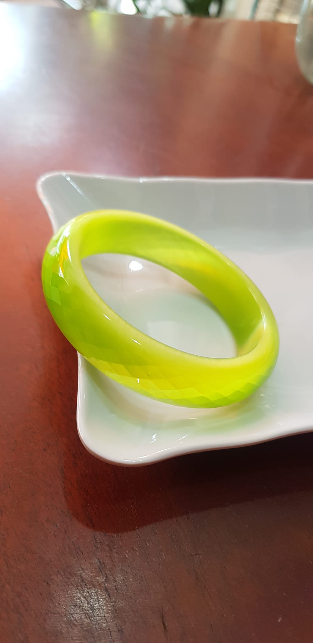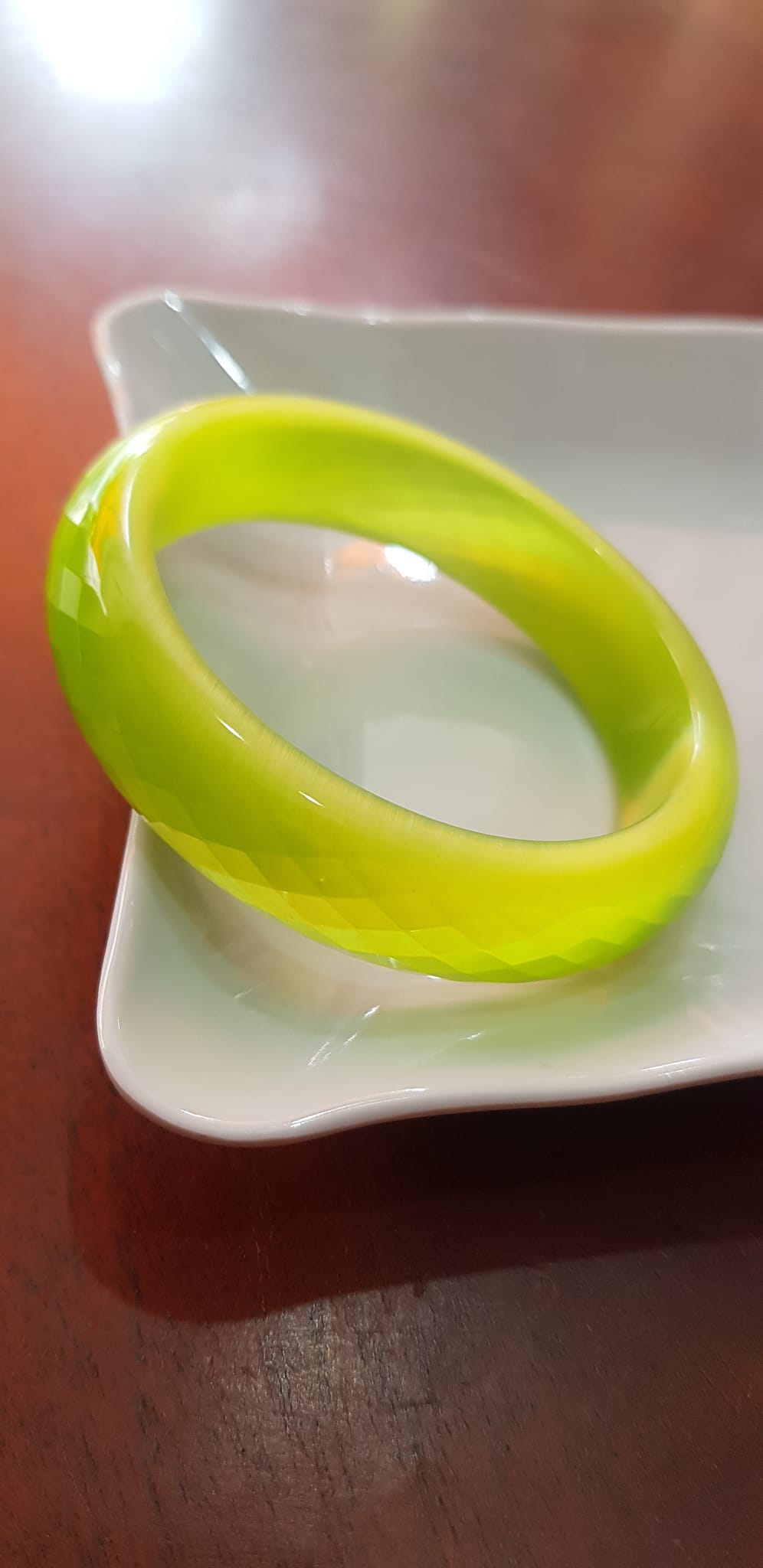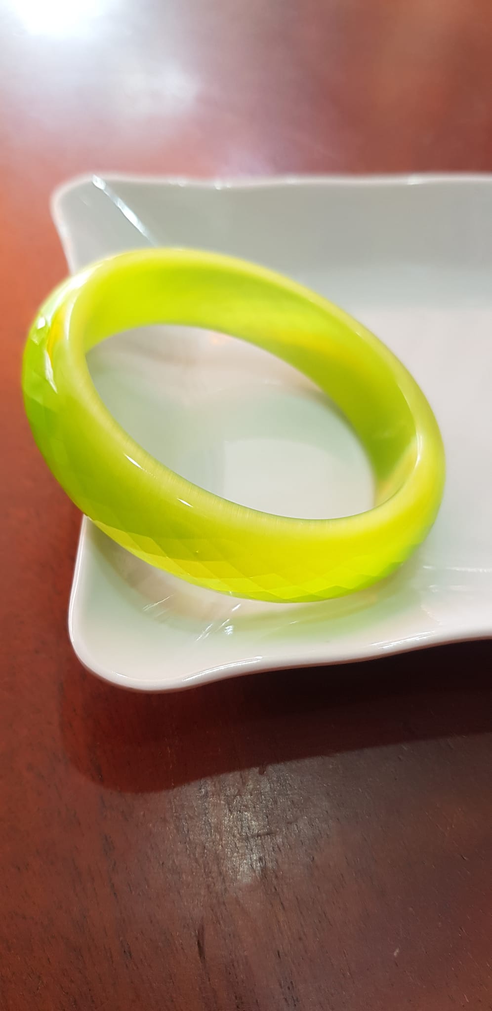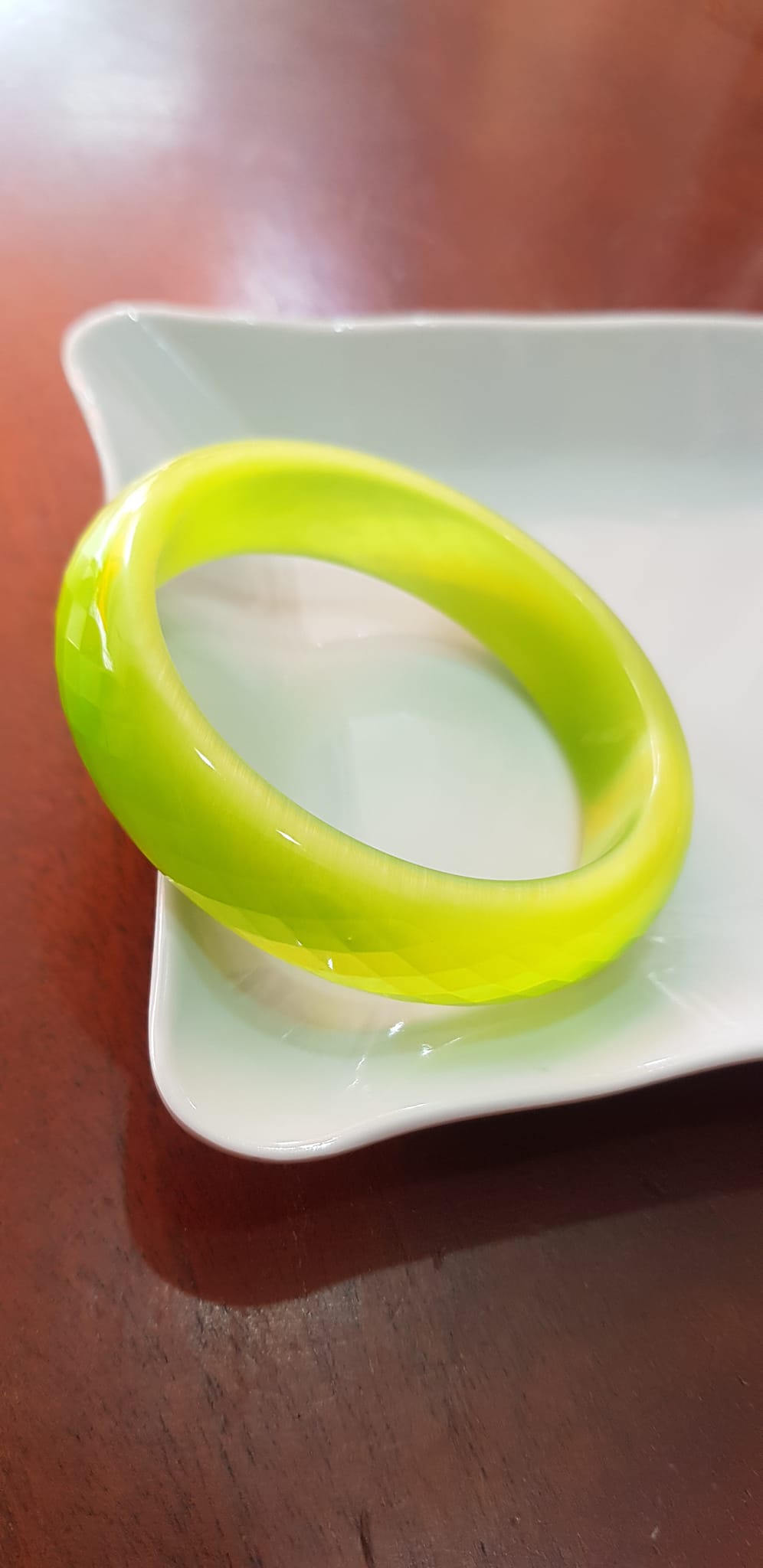 Vòng tay bản hẹ đá mắt mèo giác xanh đợt chuối tươi sáng mới đẹp lạ vòng Ni 55mm Cao 15mm dầy 7mm