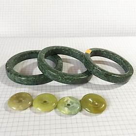 Vòng tay Nữ Đá Cẩm Thạch mới TR Lý 57 mm x cọng 7,5mm Màu Xanh lý tươi trắng 2 bên đều vòng đẹp Nữ 55kg - 64kg đeo đẹp món quà tặng chính mình