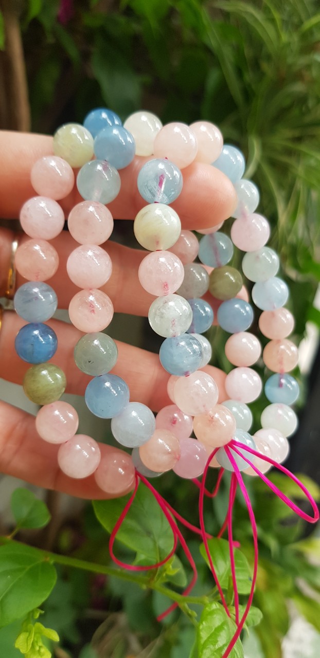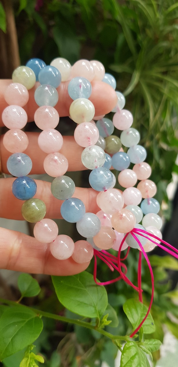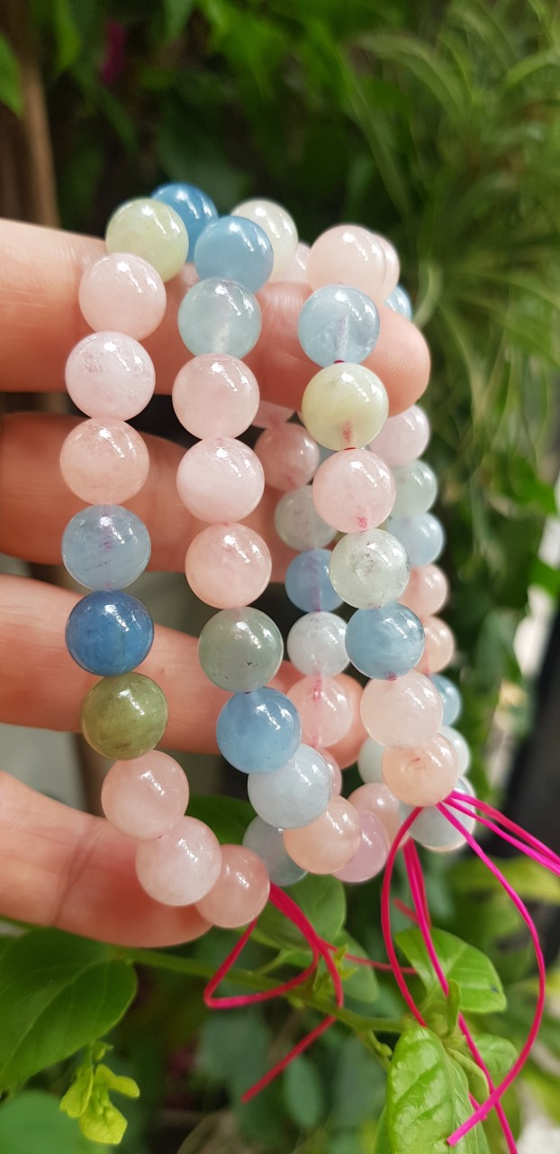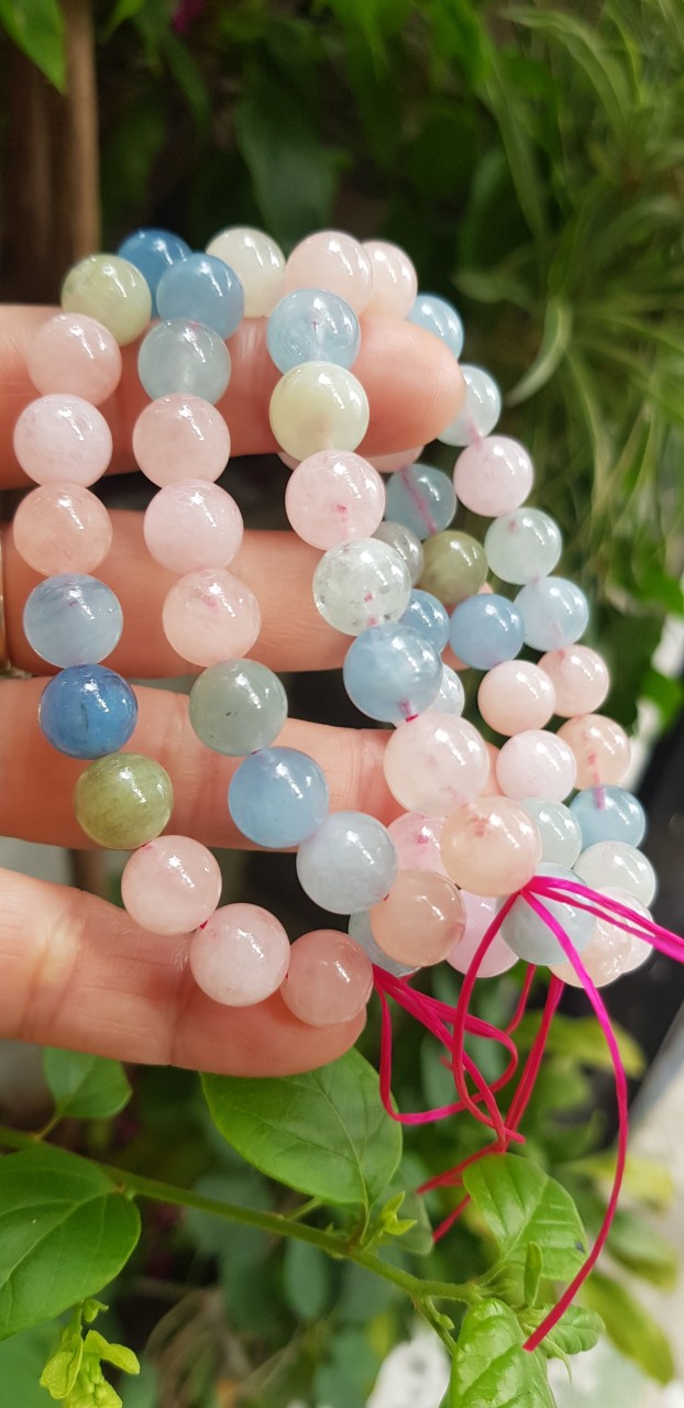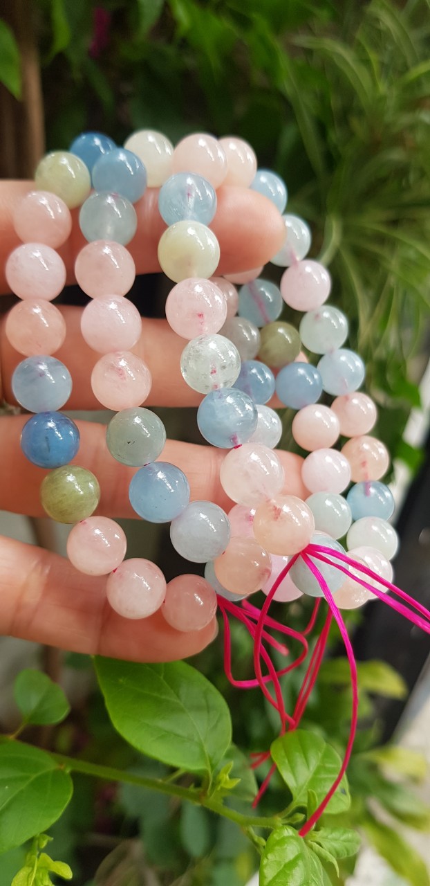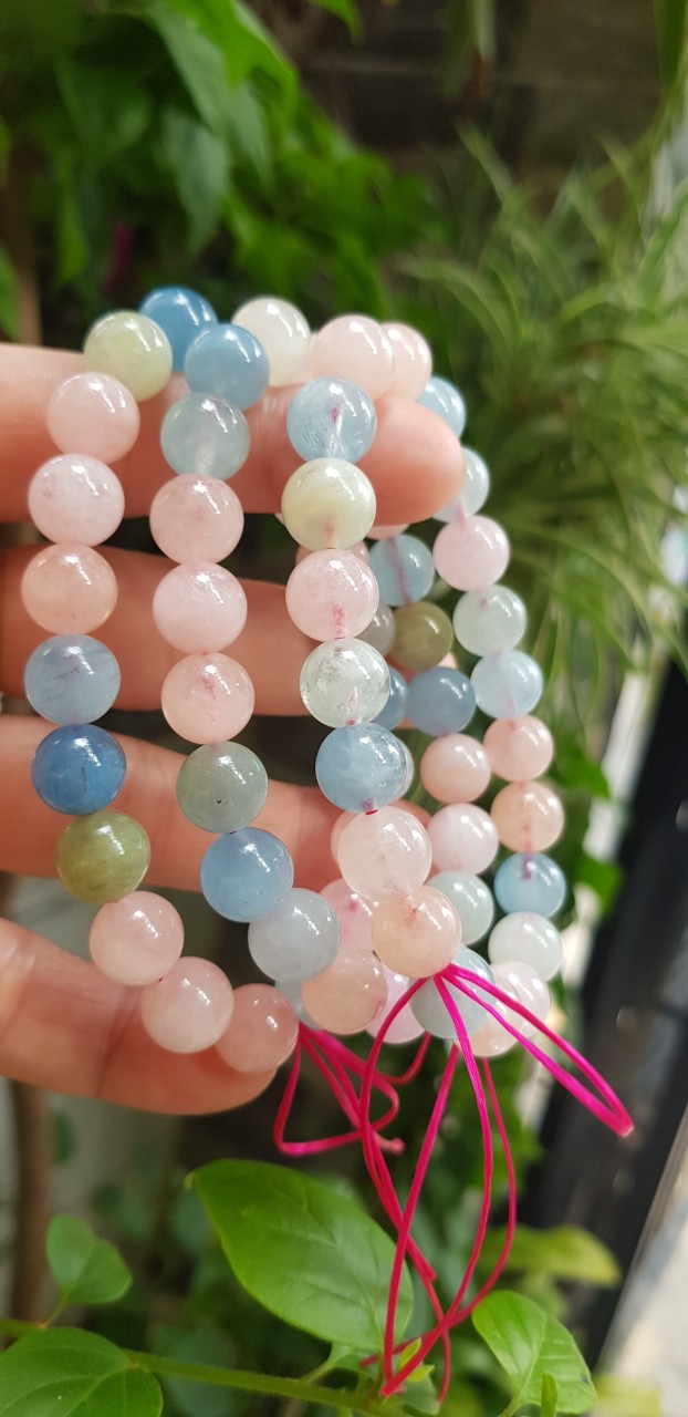 Vòng tay chuỗi Beryl tự nhiên đa sắc màu tươi sáng bóng mượt đẹp size hạt 9mm là sản phẩm phù hợp cho phụ nữ. Với tông màu hồng ngọt ngào kết hợp cùng xanh dương nước biển đậm, chiếc vòng này mang lại cảm giác tươi mới, trẻ trung và rất xinh xắn.