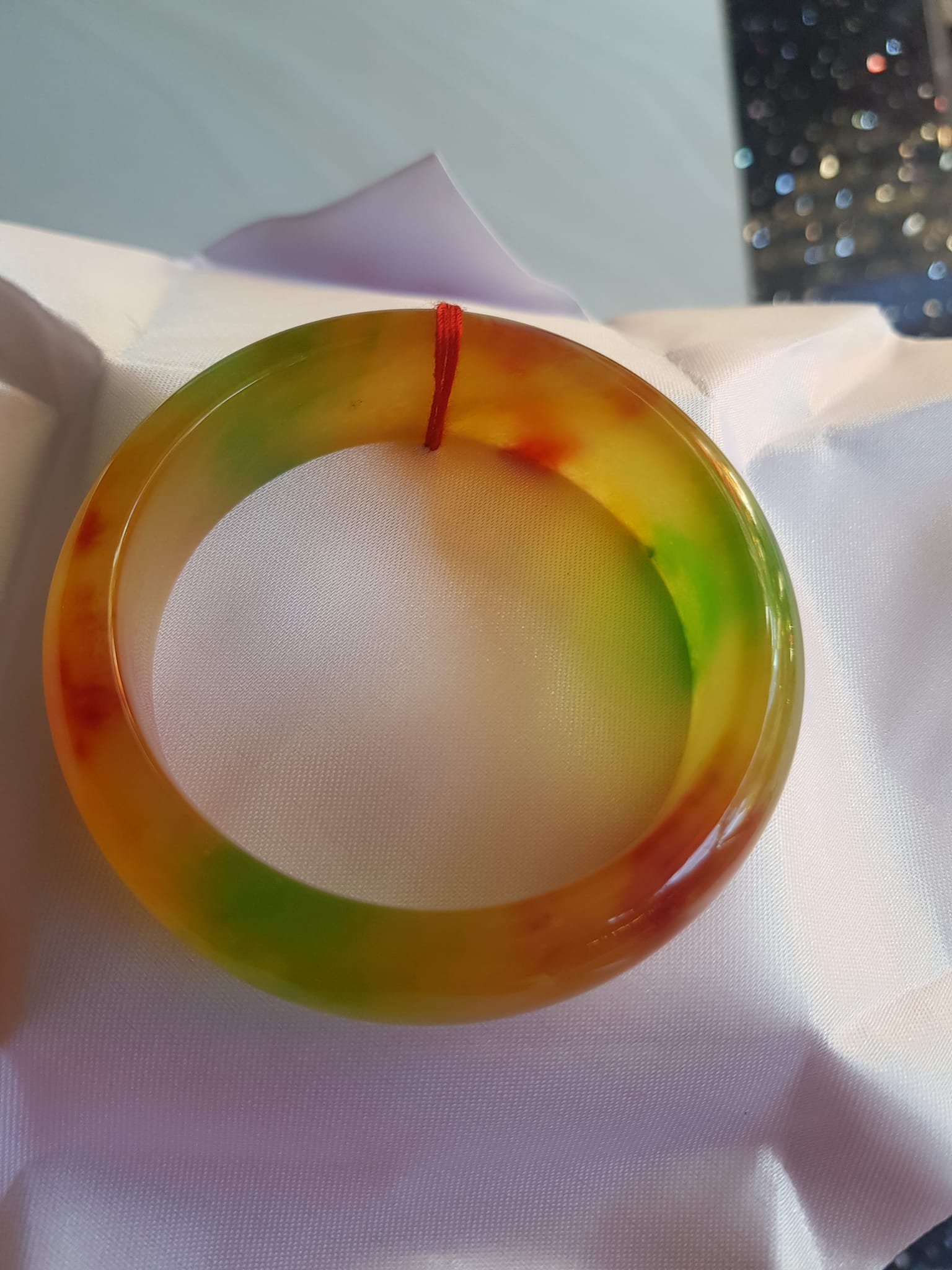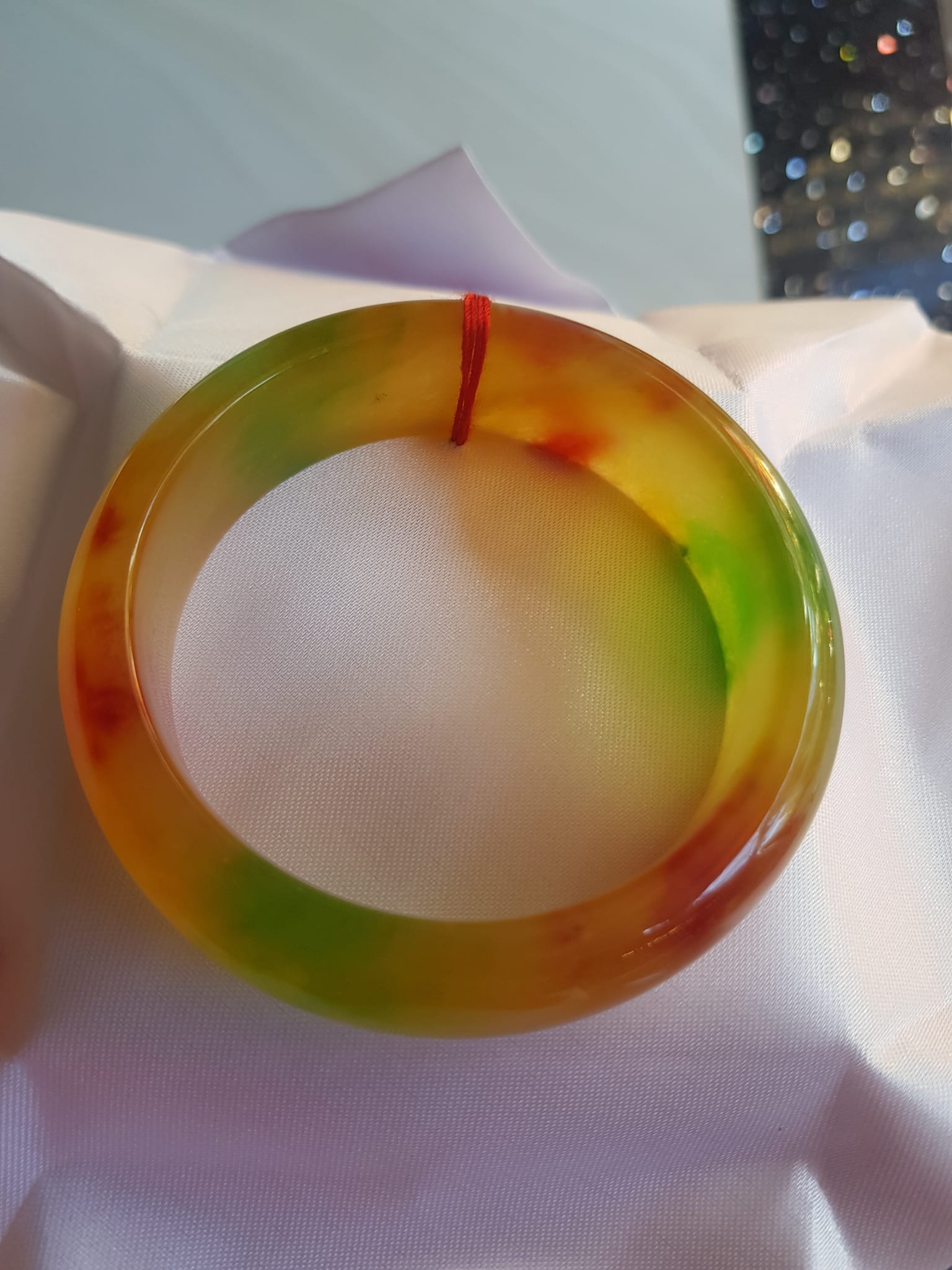 ✨Vòng Tay Đá Cẩm Thạch Hẹ Bản 58 VĐX màu vàng đỏ xanh bóng đẹp Size 58mm x cao 18mm x dầy 8,5mm Nam Nữ mệnh Thổ mệnh Kim 57kg - 67kg đeo ạ