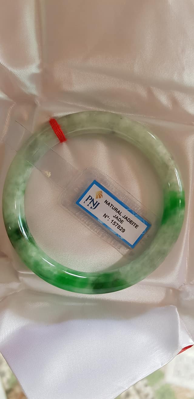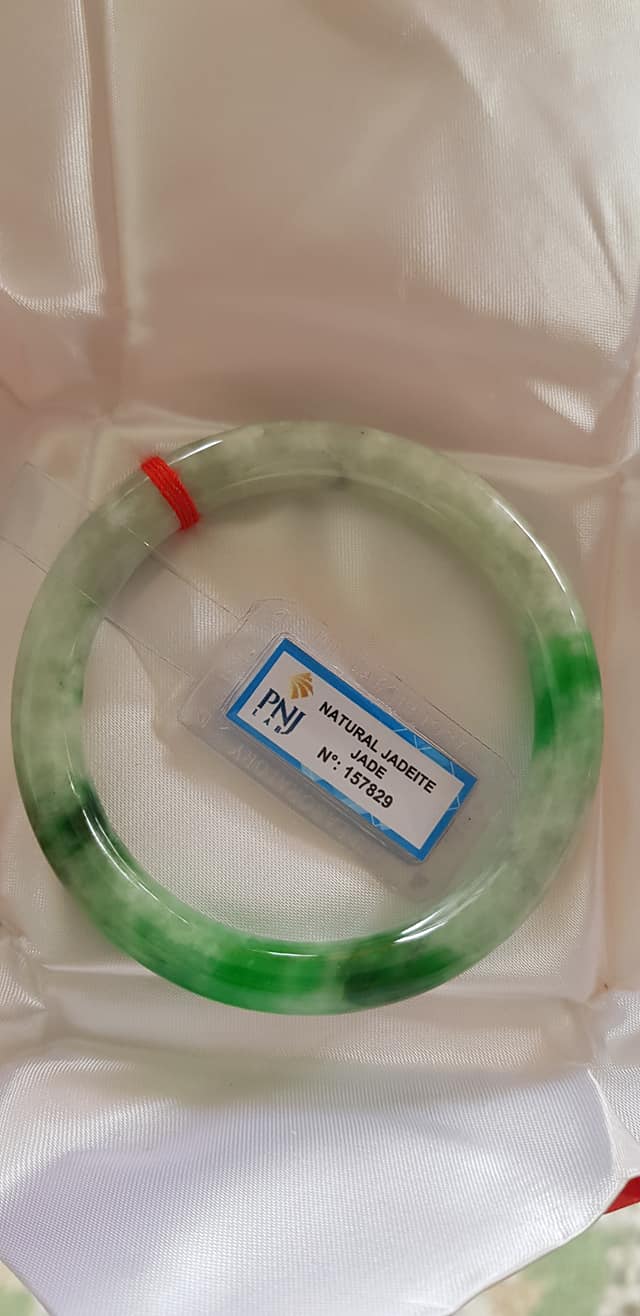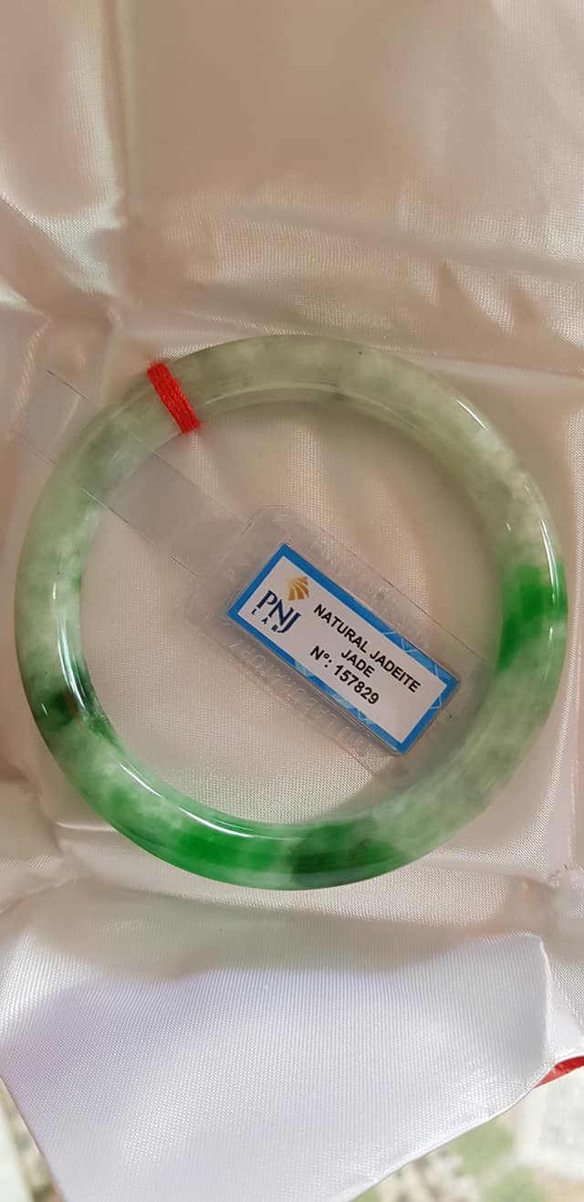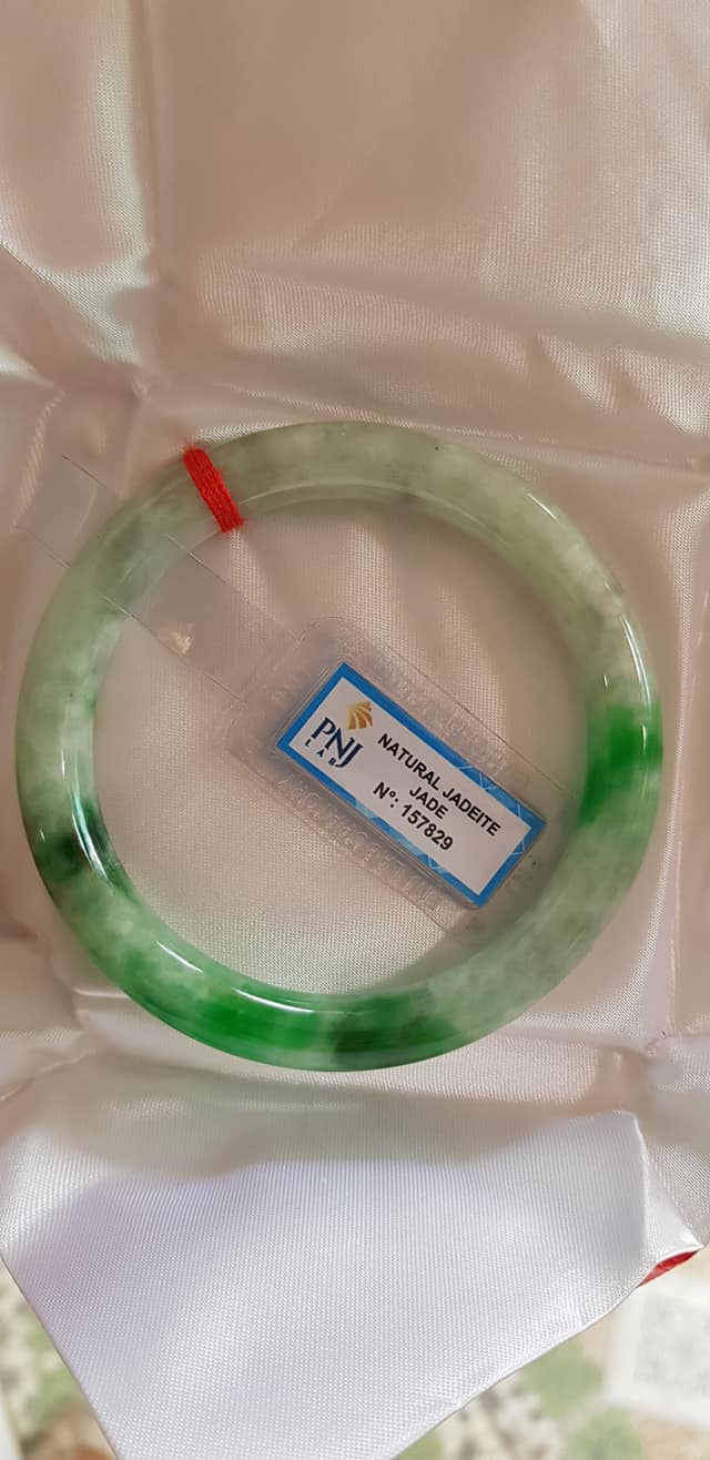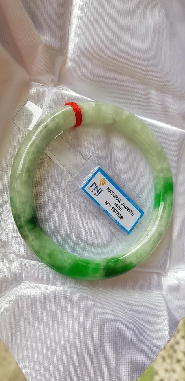 🍀💌🍀Vòng tay nữ đá Cẩm Thạch tự nhiên Đậu Lý Ni 51mm x c8mm vòng kiểm Natural Jadeite Pnj No 215715