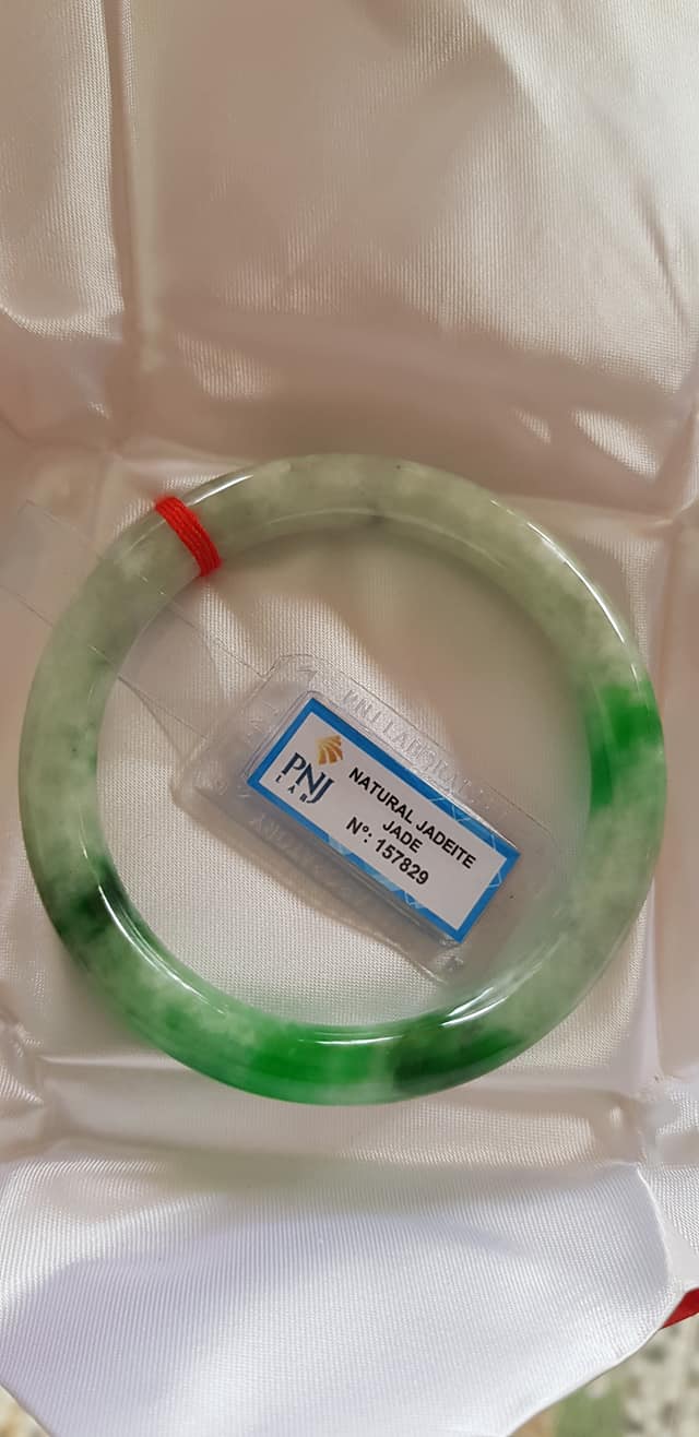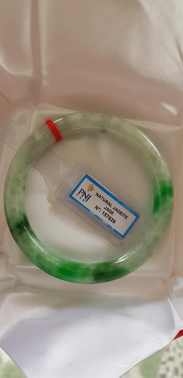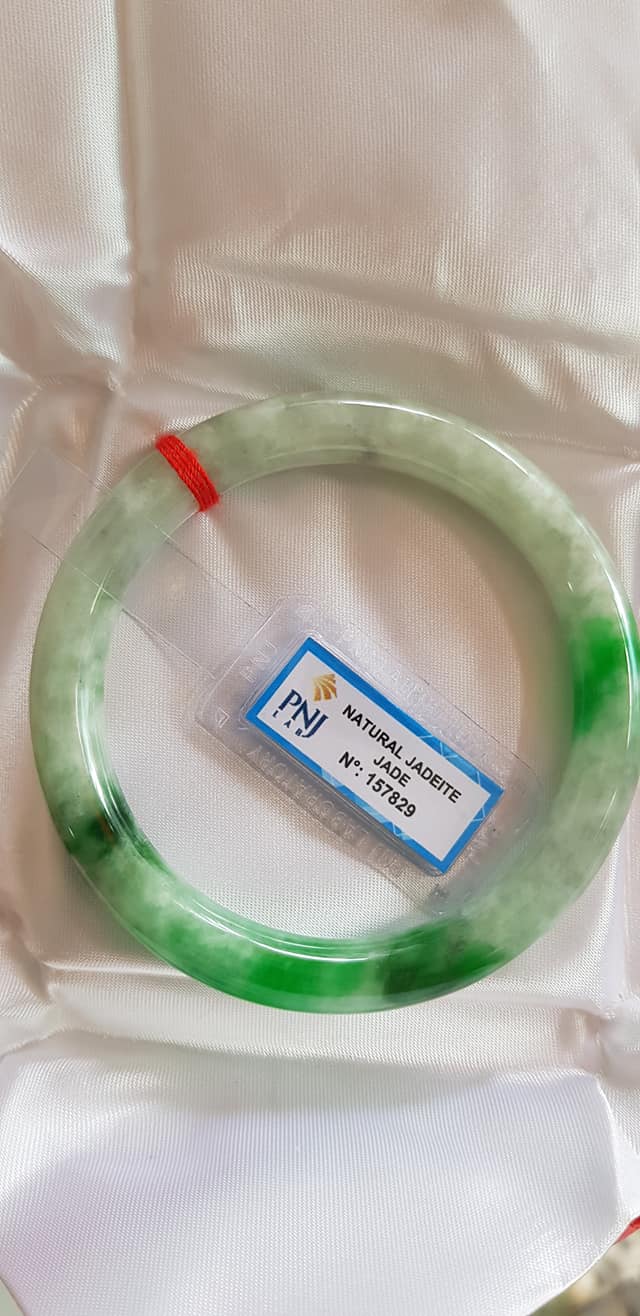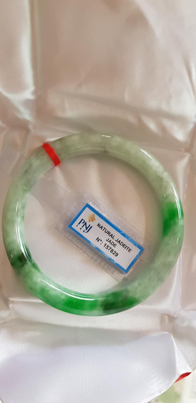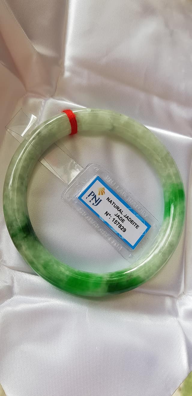 🍀💌🍀Vòng tay nữ đá Cẩm Thạch tự nhiên Đậu Lý Ni 51mm x c8mm vòng kiểm Natural Jadeite Pnj No 215715