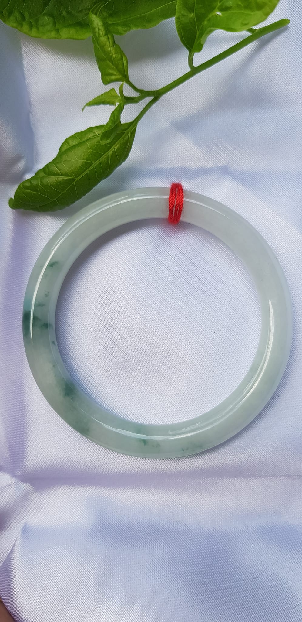 ✨Vòng Tay Đá Ngọc Cẩm Thạch tự nhiên TR LÝ 49mm x cọng 7,2mm Màu bạch ngọc trắng bóng điểm lý xanh rêu rất là đẹp sang Nữ mệnh Kim, mệnh Thủy năngh 47kg - 51kg đeo đẹp ạ