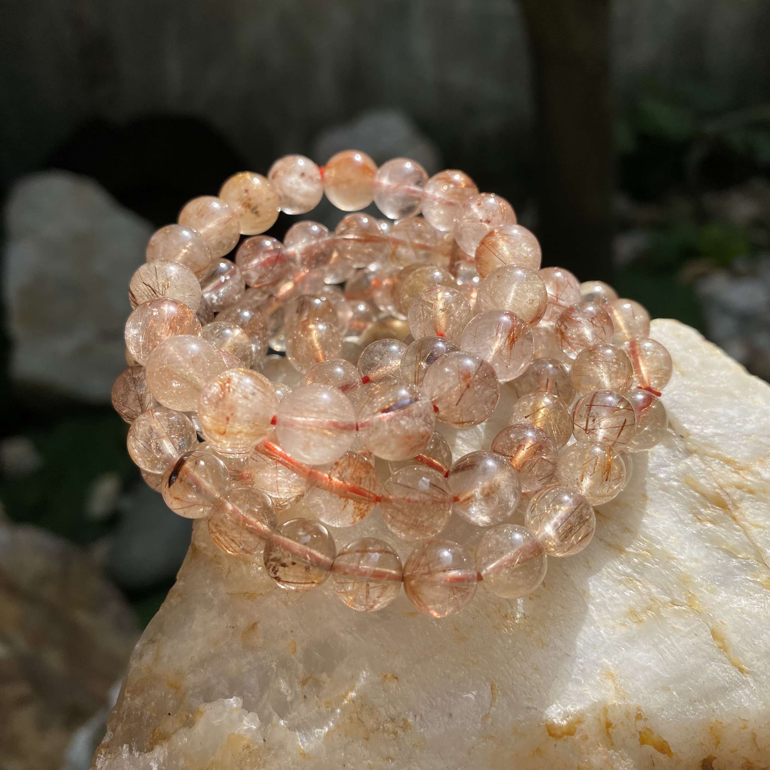 Chiêm ngưỡng vẻ đẹp lung linh dưới nắng của Vòng tay đá thạch anh tóc đỏ 8 ly, only 850k