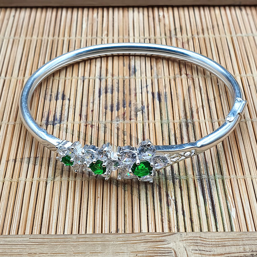✨Vòng Tay, Lắc Tay Nữ Dạng Kiềng Tam Hoa Đá Xanh Bạc S925 BẠC HIỂU MINH LTU305S