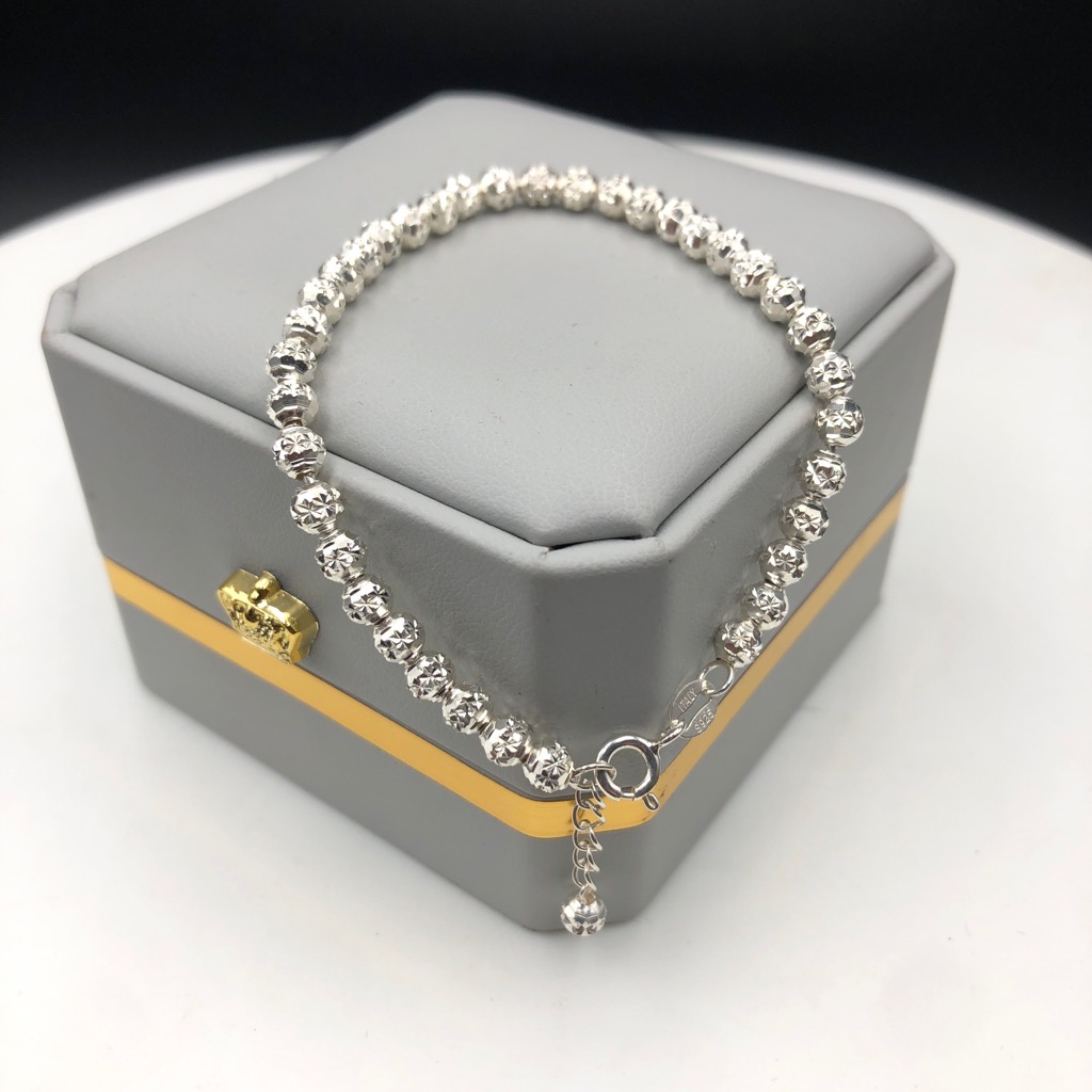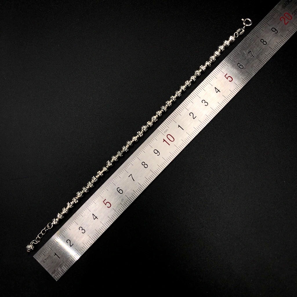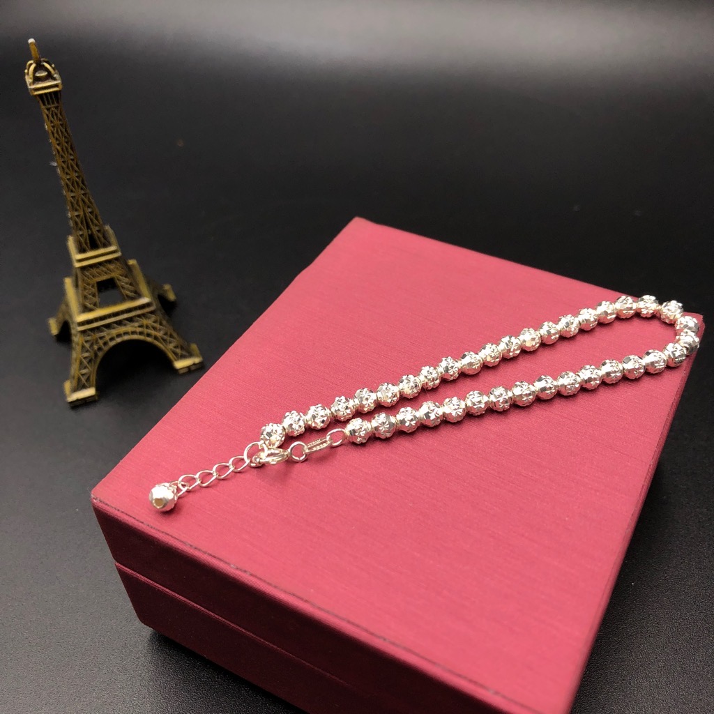 Là con gái, hẳn bạn luôn bị cuốn hút trước những bộ cánh thời trang và những đôi giày sành điệu. Tuy nhiên để làm hoàn hảo hình ảnh của mình trong mắt người đối diện, các bạn cần thêm những món phụ kiện bé bé xinh xinh để điểm tô cho vẻ ngoài thêm ấn tượng. Và hôm nay, S sẽ mang đến các bạn cơ hội sở hữu chiếc lắc tay rất dễ thương, được làm bằng bạc ta. Sản phẩm thích hợp với những bạn gái có phong cách dịu dàng, nữ tính.