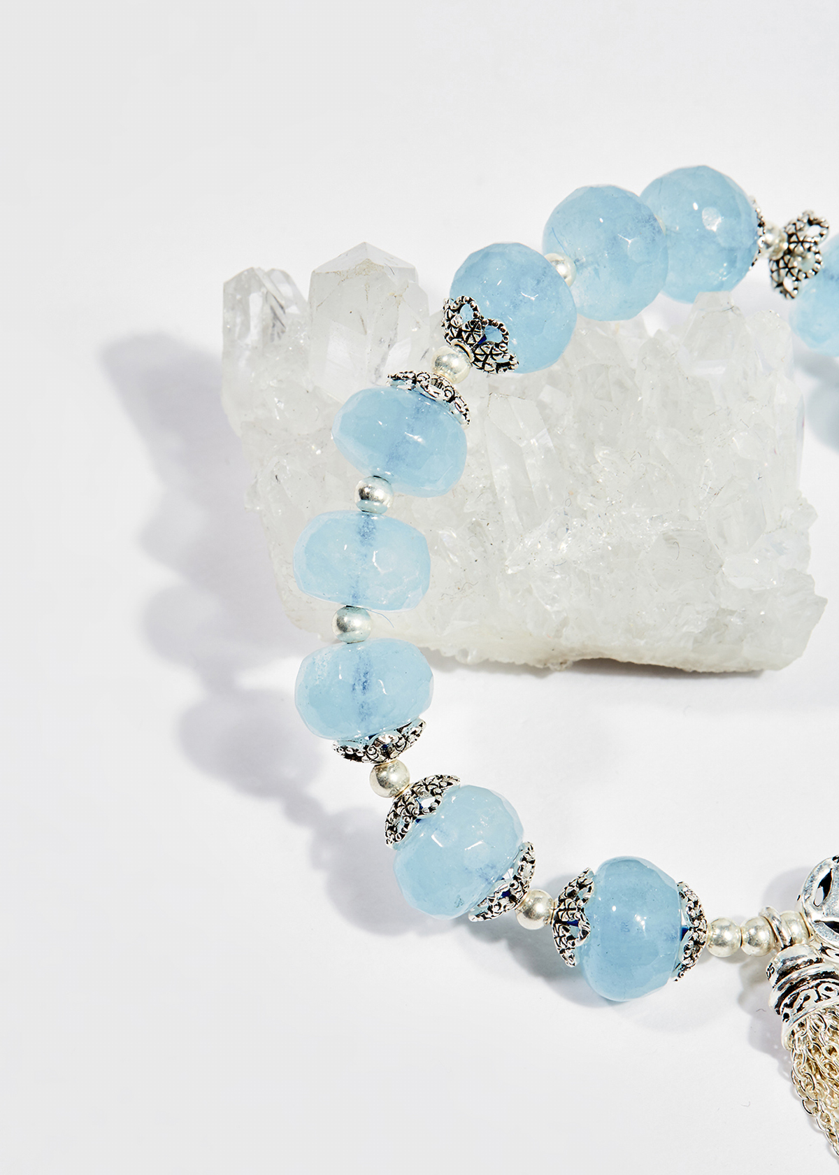 Vòng tay phong thủy đá aquamarine hợp mệnh Mộc và Thủy. Đá quý thiên nhiên hila