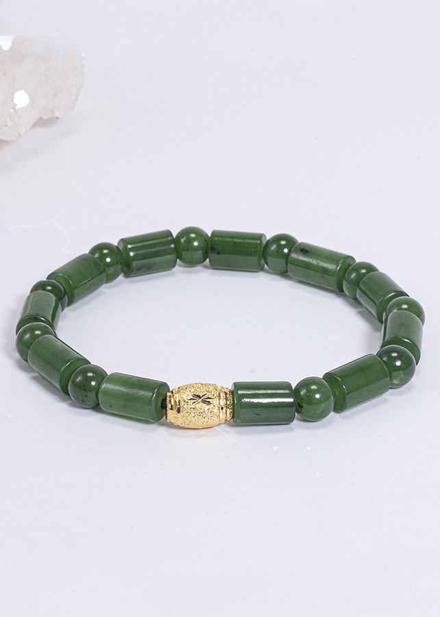 Từ lâu người ta đã biết đến đá Ngọc bích như một viên đá đại diện cho quyền uy Đế Vương, mang màu sắc thanh cao và quý phái. Giúp trấn tà, thu hút may mắn, thành toàn cho ước mơ của chủ nhân. Ngoài ra, đá Ngọc Bích rất có lợi cho sức khỏe của người đeo chúng, lâu dài có thể cải thiên tuổi thọ. Vòng Tay Phong Thủy Nữ Đá Ngọc Bích Đốt Trúc Phối Charm Mạ Vàng 24K (7mm) Mệnh Mộc, Hỏa được làm từ đá Ngọc bích và là vật phẩm không thể thiếu trong bộ sưu tập đá quý của bạn.