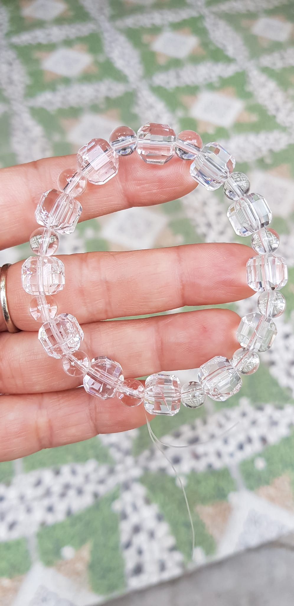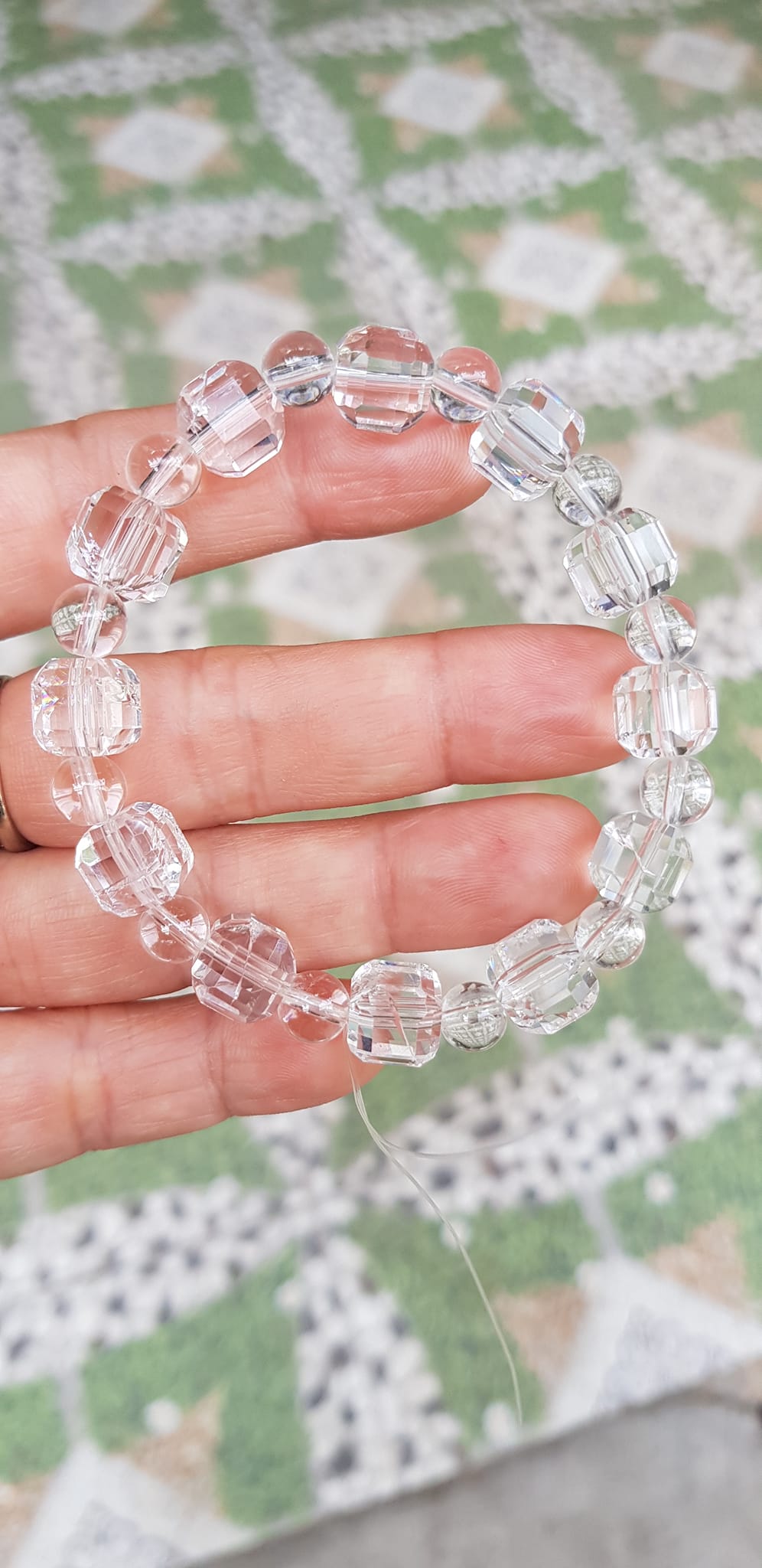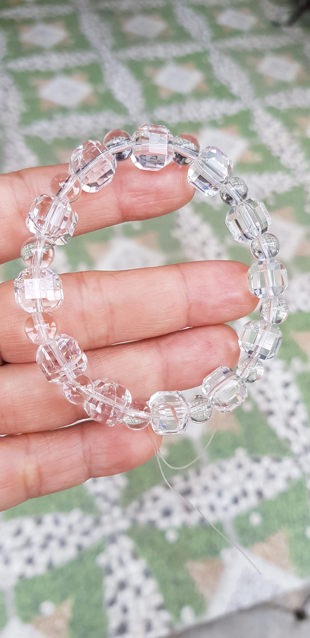 ✨ Vòng tay phong thuỷ nữ đá thạch anh trắng trong tự nhiên kiểu vuông giác tròn Size hạt vuông 10mm hạt tròn nhỏ 6mm Nữ mệnh kim mệnh Thủy đeo hợp may mắn tốt sức khoẻ công việc ạ