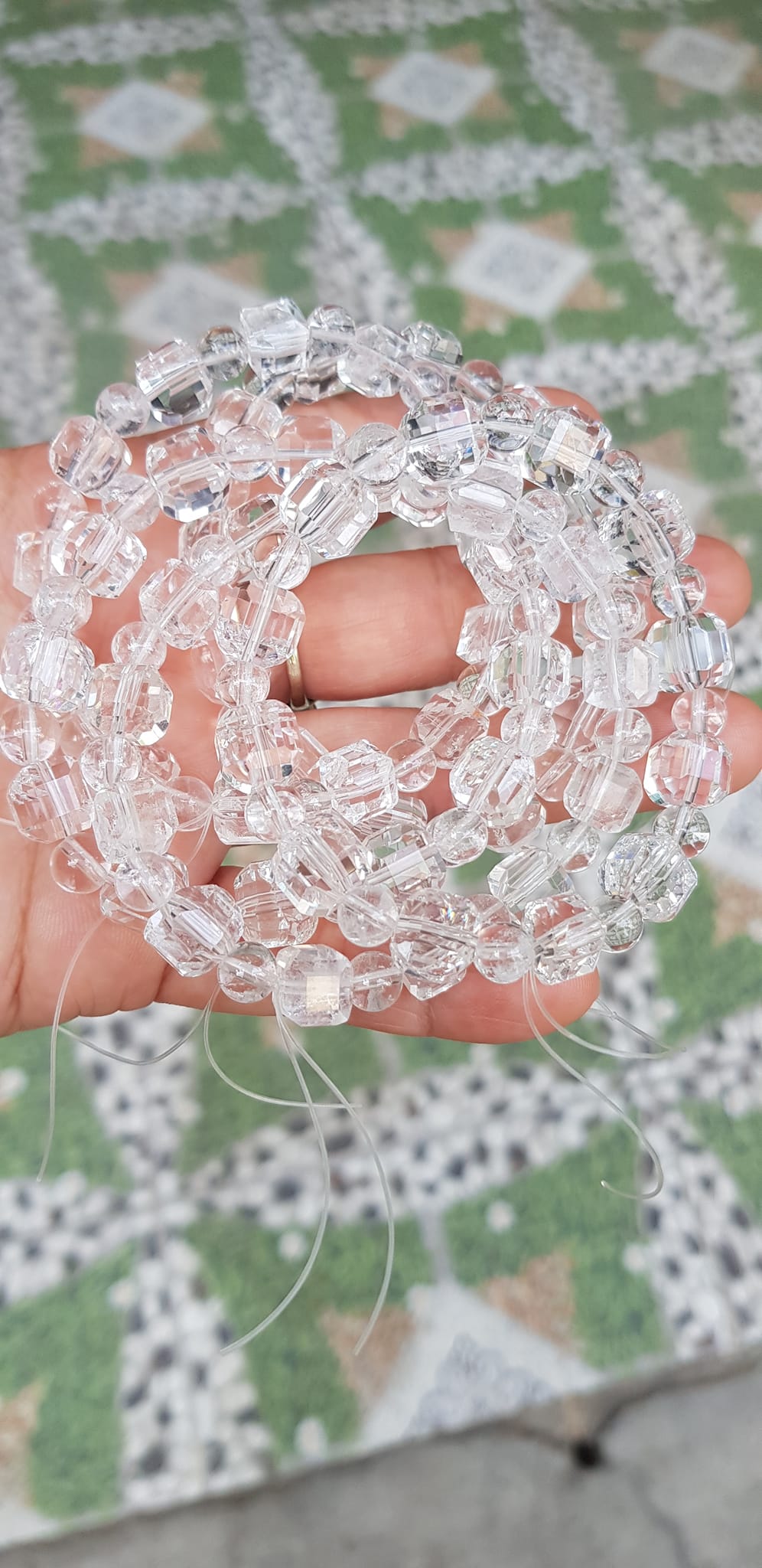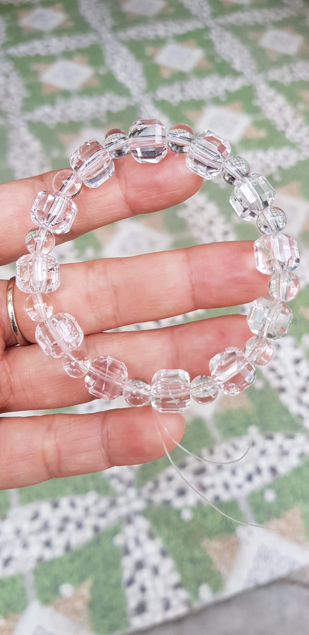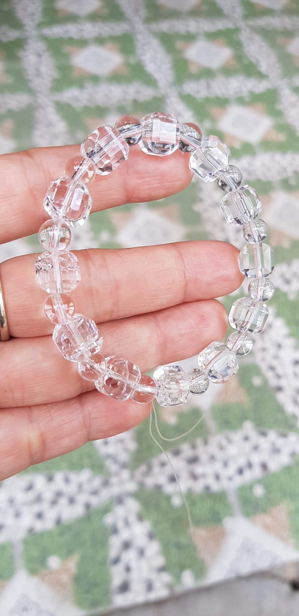 ✨ Vòng tay phong thuỷ nữ đá thạch anh trắng trong tự nhiên kiểu vuông giác tròn Size hạt vuông 10mm hạt tròn nhỏ 6mm Nữ mệnh kim mệnh Thủy đeo hợp may mắn tốt sức khoẻ công việc ạ