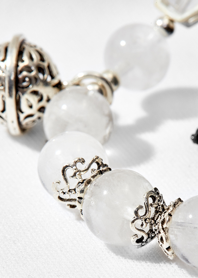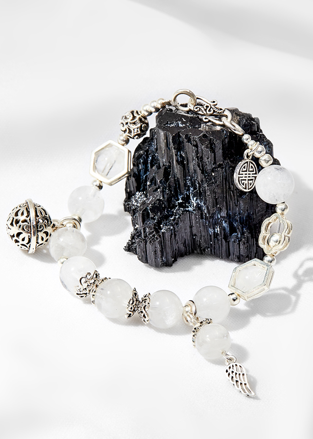 Vòng tay đá thạch anh ưu linh trắng phối charm bạc - Hợp mệnh kim, mệnh thủy | Ngọc Quý Gemstones |