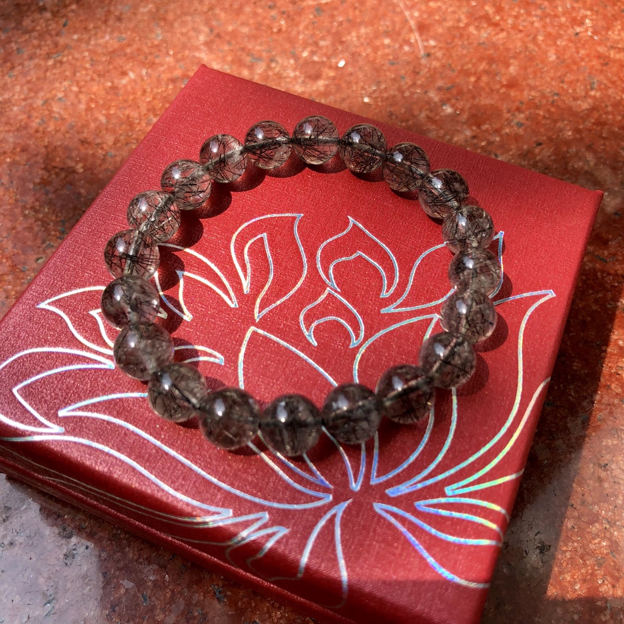 Vòng Đá thạch anh tóc đen trong giúp cơ thể chủ nhân lưu thông khí huyết và hỗ trợ điều trị những bệnh về máu, về cột sống và xương khớp.