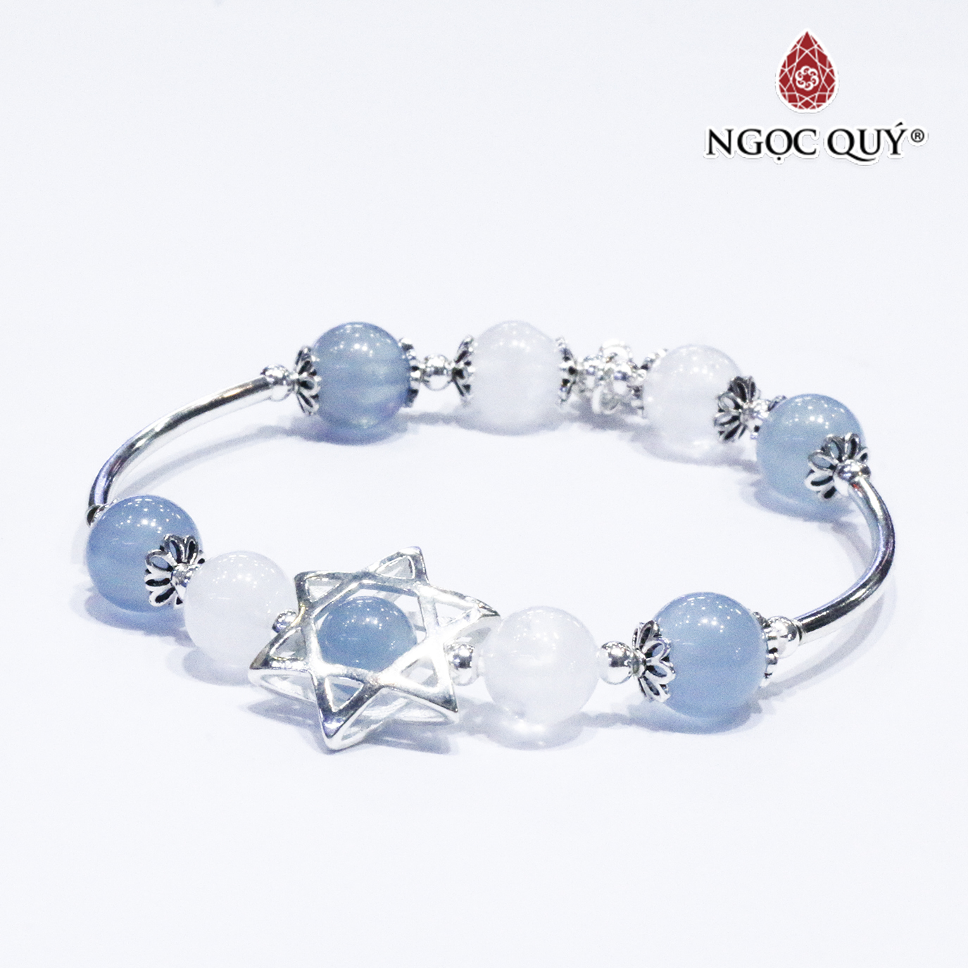 ✨Vòng thạch anh ưu linh trắng phối aquamarine charm bạc - Ngọc Quý Gemstones
