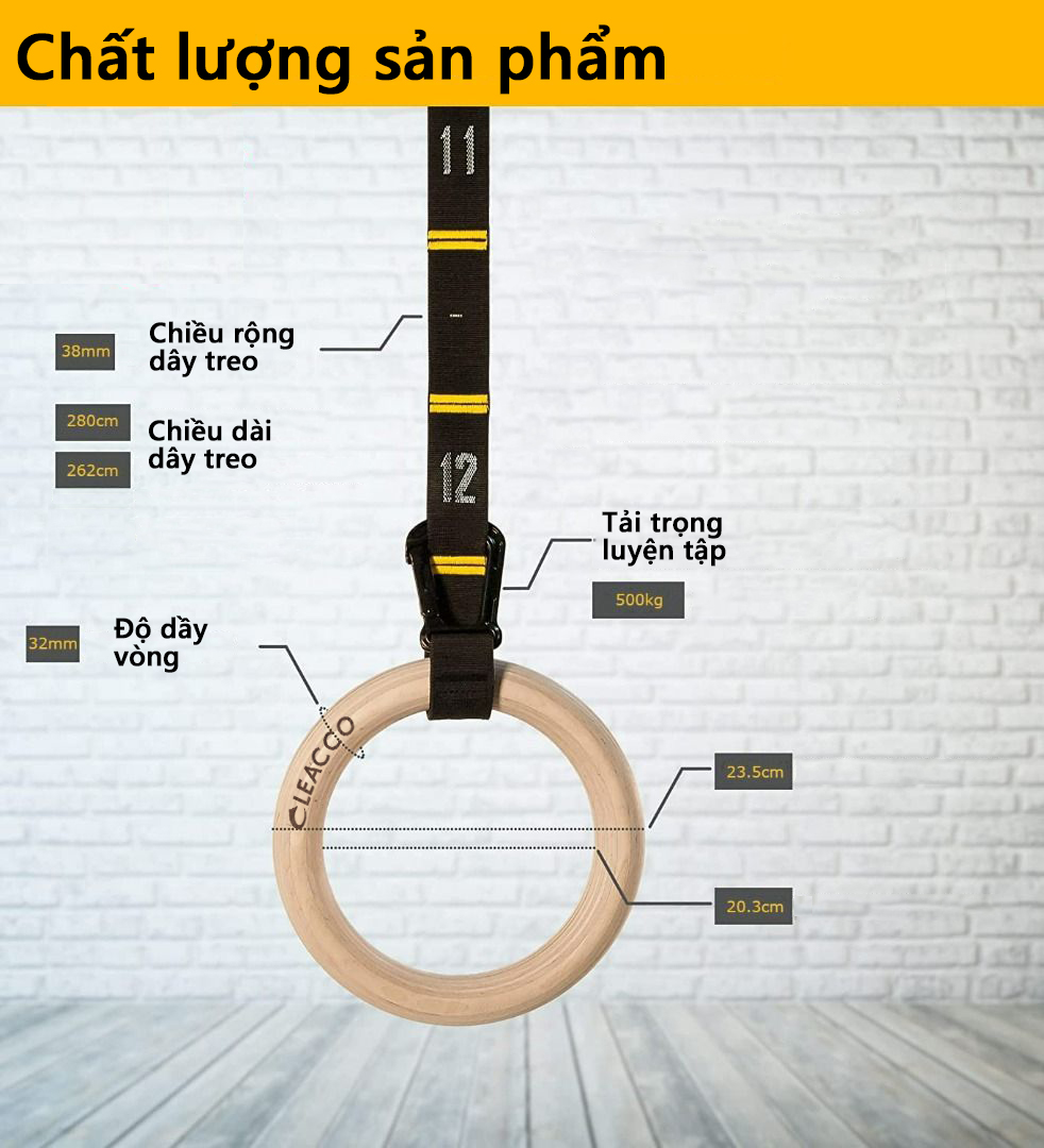 Vòng Treo Gỗ Tập Gym Gymnastic Rings Cleacco Bộ vòng xà tay tập thể dục Vòng treo Gymnastic Rings là Vòng treo hay còn gọi là xà vòng, xà xích, vòng crossfit… trong tiếng Anh