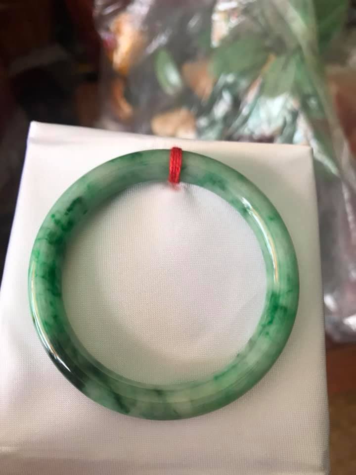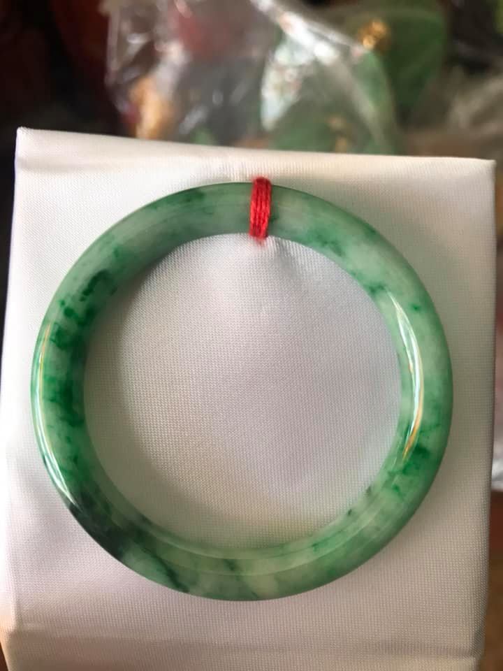 Vòng tay Nữ Đá Cẩm Thạch mới TR Lý 57 mm x cọng 7,5mm Màu Xanh lý tươi trắng 2 bên đều vòng đẹp Nữ 55kg - 64kg đeo đẹp món quà tặng chính mình