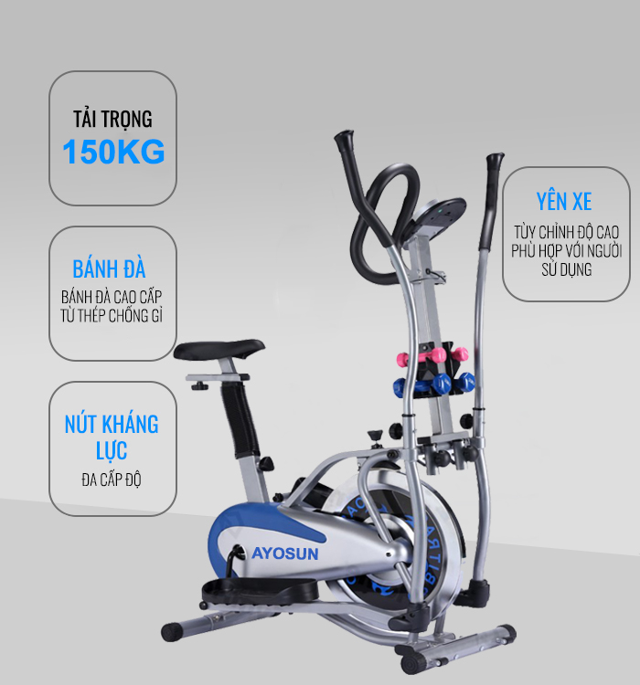 Bền đẹp, hiện đại, đa chức năng là những gì mà chiếc xe đạp tập thể dục toàn thân AYS – 885X7 này mang lại, với thiết kế cực kì vững chắc với nhiều công dụng, khả năng khác nhau, đây xứng đáng được coi là sản phẩm tuyệt vời trong việc cải thiện và nâng cao sức khỏe của bạn.