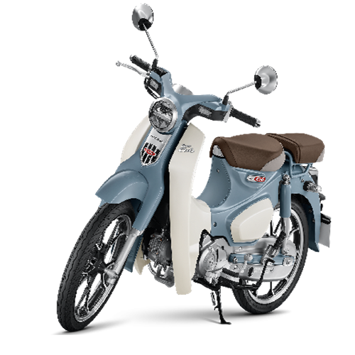 Super Cub C125 - 2025: THIẾT KẾ: Thiết kế huyền thoại, đậm chất cổ điển Thiết kế hình chữ S kế thừa kiểu dáng huyền thoại của xe Super Cub thập niên 50, mang đến sự hài hòa và mềm mại. Lớp sơn nhũ ánh kim kết hợp với các chi tiết mạ crôm tinh tế gợi lên nét đẹp cổ điển, pha lẫn sự sang trọng, cao cấp, đặc trưng của dòng xe Super Cub Tư thế lái xe thoải mái Tay lái được thiết kế phù hợp giúp tư thế lái thẳng lưng cùng khả năng điều khiển xe cân bằng Sắc xanh lịch lãm, sang trọng Ngoài 2 màu đen và xanh xám, Super Cub nay có thêm màu xanh dương mới được lấy cảm hứng từ màu sắc của chiếc Super Cub C100 lần đầu tiên được ra mắt vào năm 1958, mang đến nét đẹp hoài cổ, lịch lãm và sang trọng cho chiếc xe, đồng thời nâng tầm phong cách, và bộc lộ cá tính của người điều khiển xe ĐỘNG CƠ - CÔNG NGHỆ: Động cơ bền bỉ Động cơ dung tích 125cc, đạt công suất tối đa 6,87kW và mô men xoắn cực đại 10,15Nm mang lại khả năng vận hành mạnh mẽ và tiết kiệm nhiên liệu tối ưu TIỆN ÍCH & AN TOÀN: Hệ thống khóa thông minh Chìa khóa thông minh được trang bị 3 chức năng: Cảnh báo chống trộm, xác định vị trí xe thông minh và khởi động hệ thống điện Hệ thống đèn LED hiện đại và đèn luôn sáng AHO Trên xe trang bị hệ thống chiếu sáng đèn LED hiện đại giúp cải thiện tầm nhìn khi di chuyển trong trời tối   Xe cũng được trang bị hệ thống đèn chiếu sáng phía trước luôn sáng - AHO giúp tăng khả năng được nhận diện của xe khi lưu thông trên đường, giúp người điều khiển phương tiện khác dễ dàng nhận biết và chủ động phòng tránh va chạm Mặt đồng hồ hiện đại và phanh đĩa thủy lực phía trước Mặt đồng hồ được xếp theo dạng 2 hình tròn đồng tâm, đặt giữa là một vòng tròn crôm với bên trong là màn hình LCD thể hiện: Lượng xăng trong bình, quãng đường đã đi được và thời gian.   Vành xe nhôm đúc 17 inch dùng lốp không săm với phanh đĩa phía trước đem đến cảm giác vận hành tin cậy cùng khả năng dừng xe hiệu quả. Yên xe mềm mại Yên xe trước và sau sử dụng lớp đệm Urethane có độ dày lớn với độ đàn hồi cao, mang đến sự êm ái và thoải mái cho cả người lái và người ngồi sau