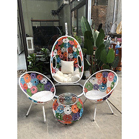 Bộ sản phẩm gồm : + Chân đế xích đu + Cần treo + lồng xích đu + Nệm xích đu chất lượng, được giật nút tỉ mỉ, chất liệu vải bố hoặc nhung màu