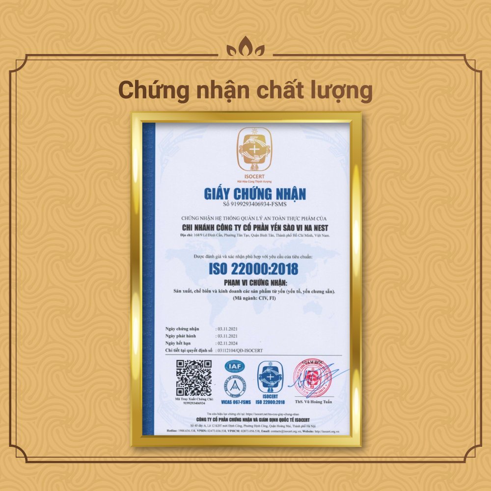 Sản xuất : Chi nhánh công ty cổ phần Yến Sào Vi Na Nest