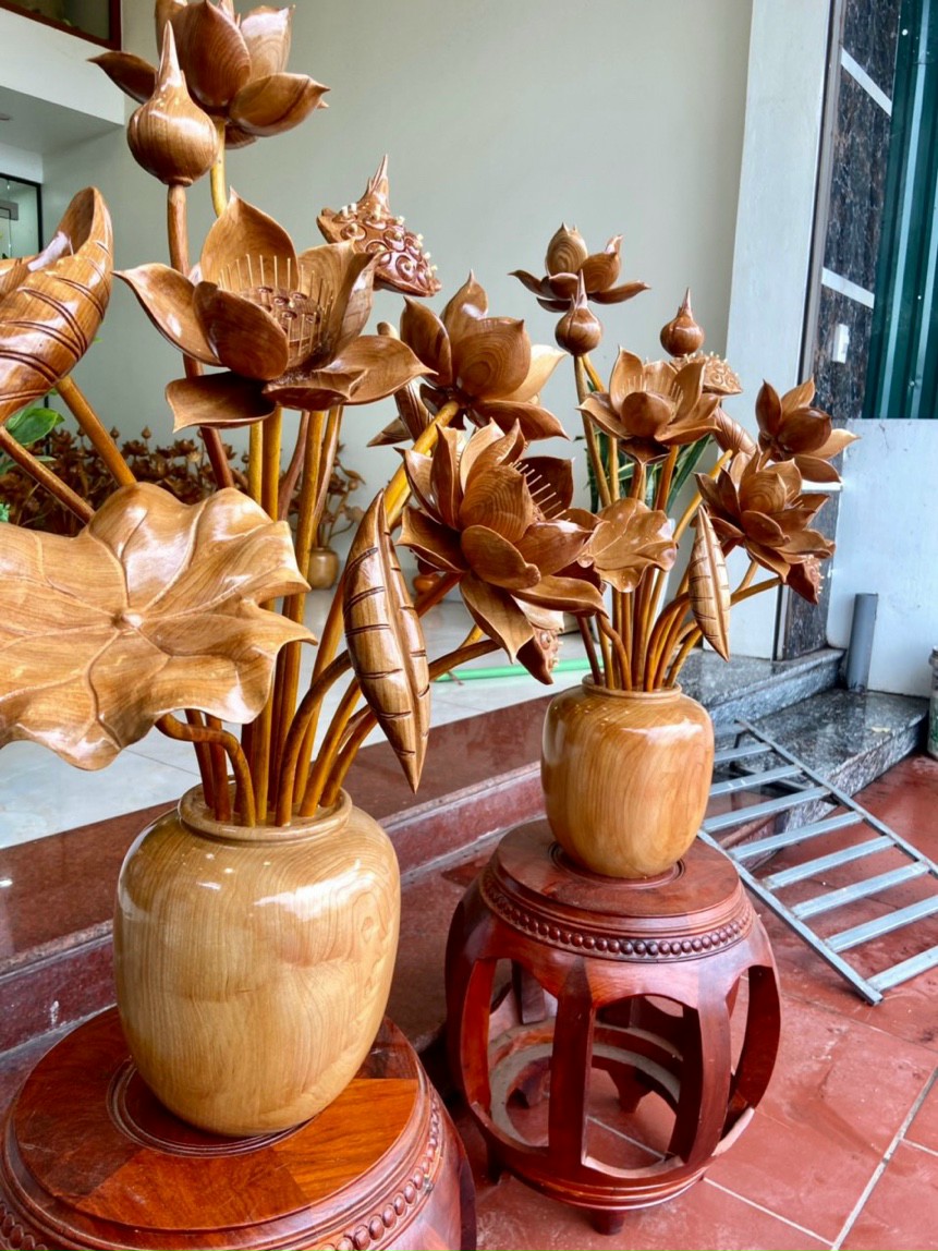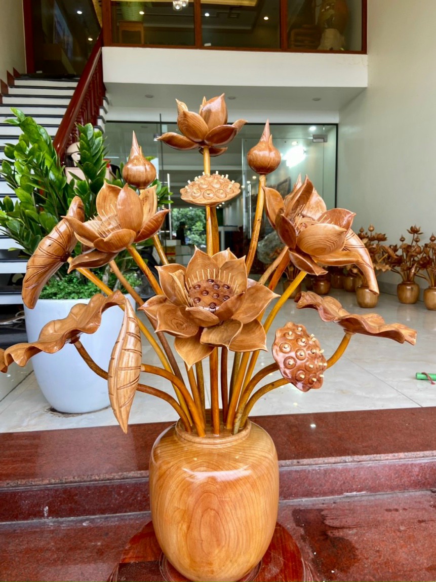 Hoa Sen gỗ Ngọc Am để mộc tỏa mùi thơm, bình gỗ Mít ta nguyên khối