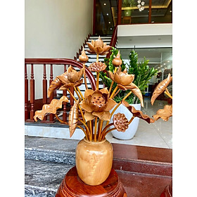 ✨1 Bình hoa sen bằng gỗ ngọc am 15 cành trang trí phòng khách phòng thờ