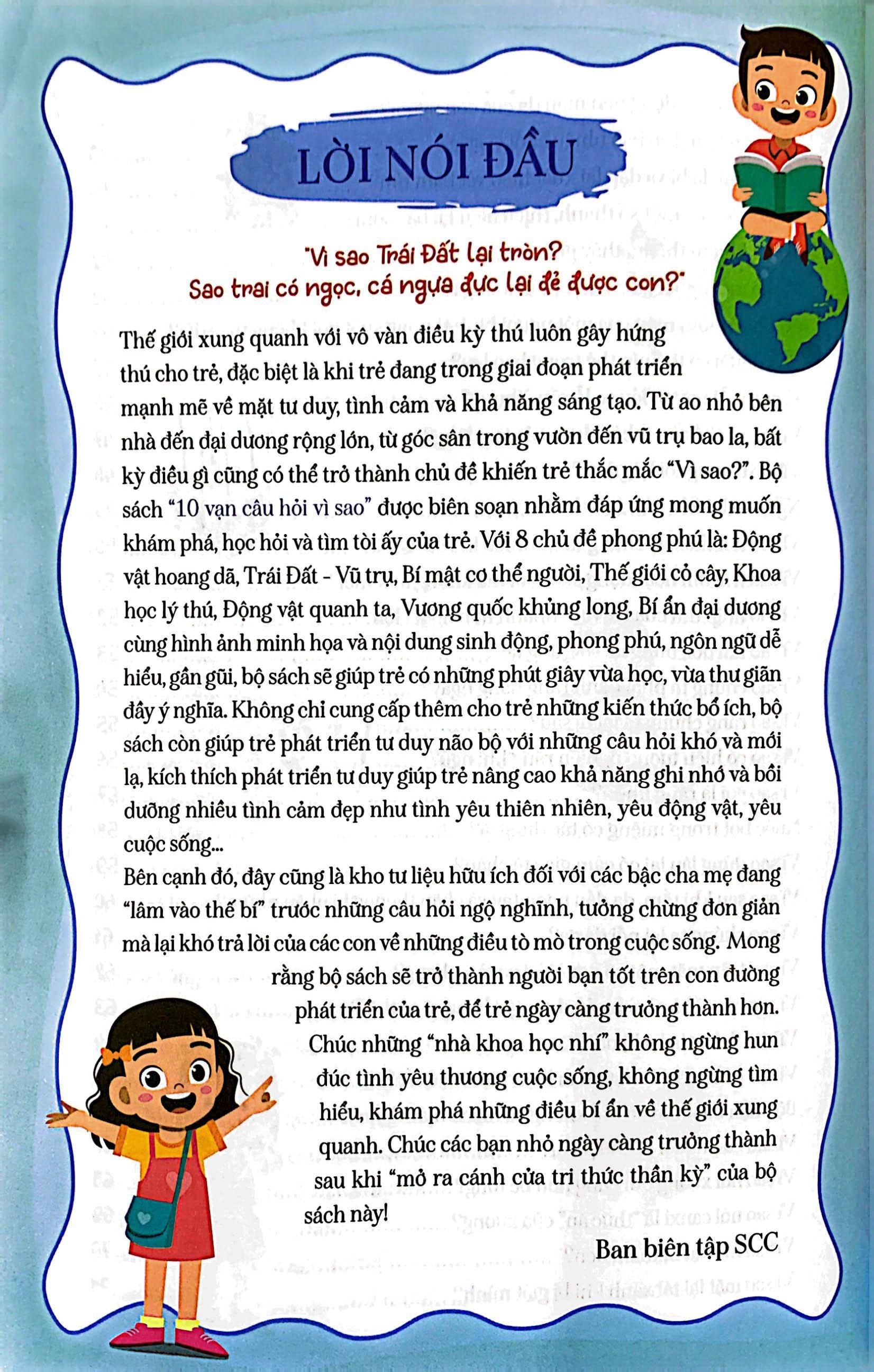 Bộ sách “Mười Vạn Câu Hỏi Vì Sao” được các tác giả sưu tầm và biên tập từ rất nhiều câu hỏi “Tại sao”, "Vì sao" của trẻ. Qua quá trình chọn lọc cẩn thận, chu đáo, các tác giả đã tổng kết được những nội dung hết sức hấp dẫn, mới mẻ và khoa học.