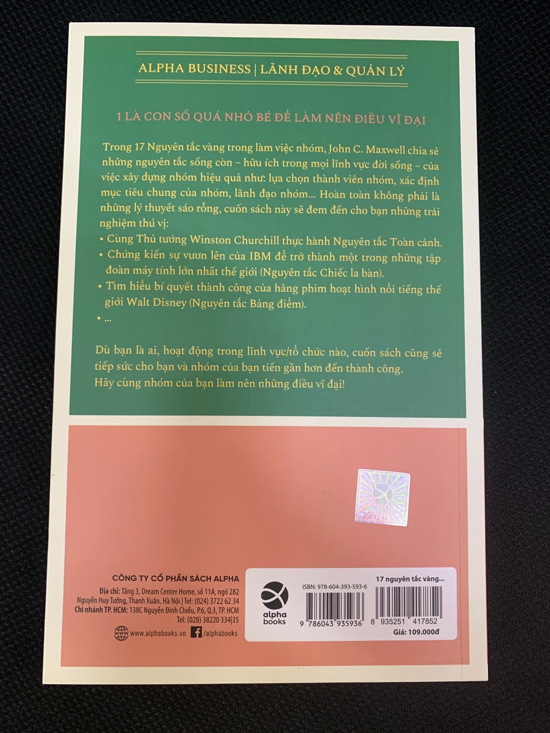 Trong "17 nguyên tắc vàng trong làm việc nhóm", John C. Maxwell chia sẻ những nguyên tắc sống còn – hữu ích trong mọi lĩnh vực đời sống – của việc xây dựng nhóm hiệu quả như: lựa chọn thành viên nhóm, xác định mục tiêu chung của nhóm, lãnh đạo nhóm… Hoàn toàn không phải là những lý thuyết sáo rỗng, cuốn sách "17 nguyên tắc vàng trong làm việc nhóm", sẽ đem đến cho bạn những trải nghiệm thú vị: