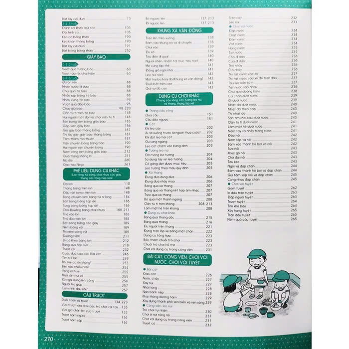 GIỚI THIỆU SÁCH: Trong xã hội hiện đại, trường mẫu giáo và nhà trẻ ngày càng đóng vai trò quan trọng trong việc khắc phục các vấn đề về tình trạng thể lực yếu, cũng như các vấn đề về tinh thần và thể chất của trẻ em. Trong cuốn sách này, chúng tôi phân loại và giới thiệu nhiều trò chơi có thể áp dụng ngay từ thời kỳ sơ sinh, kết hợp dễ dàng với việc chăm sóc trẻ, nhằm giúp trẻ làm quen với việc vận động và các bài tập thể dục. Trước hết hãy cùng xem các trò chơi vận động có thể trở thành những trải nghiệm quan trọng đến thế nào trong việc nuôi dưỡng tương lai của trẻ. 3 ƯU ĐIỂM CỦA CUỐN SÁCH 1. Có nhiều trò chơi đa dạng để trẻ có thể chơi quanh năm. Cuốn sách này giới thiệu rất nhiều trò chơi, từ những trò tương tác mà trẻ 0-1-2 tuổi có thể chơi được đến những trò kết hợp nhiều kỹ năng vận động mà nhiều trẻ có thể cùng tham gia. Trẻ có thể chơi vui vẻ trong suốt cả năm. 2. Có nhiều cấp độ để tăng sự hứng thú và tăng lượng vận động của trẻ. Khi trẻ đã quen với trò chơi cơ bản, hãy thử thách trẻ với những trò chơi phát triển và trò chơi mở rộng! Càng chơi càng vui. Trẻ sẽ say sưa tận hưởng trò chơi và hào hứng chinh phục các thử thách. 3. Dễ theo dõi, dễ thực hành. Với phần giải thích chi tiết và minh họa rõ ràng, cuốn sách sẽ giúp phụ huynh và giáo viên biết cách chơi, tương tác và giao tiếp với trẻ một cách vui vẻ, hiệu quả và an toàn.