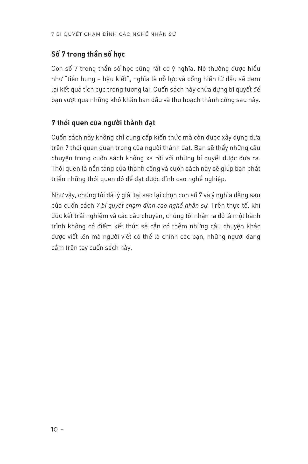 Chúng tôi viết cuốn sách 7 bí quyết chạm đỉnh cao nghề nhân sự với mục tiêu mong muốn giúp bạn trả lời những câu hỏi đó và trả lời cả những câu hỏi của chính m.ình: “Chúng tôi đã thay đổi như thế nào theo thời gian? Điều gì giúp chúng tôi phát triển như ngày hôm nay?".