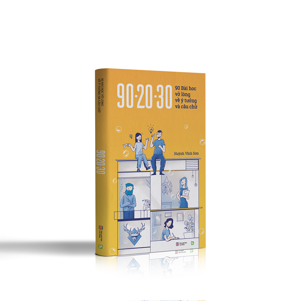 90 - 20 - 30 - 90 Bài Học Vỡ Lòng Về Ý Tưởng Và Câu Chữ NGÀNH QUẢNG CÁO QUÁ MAY MẮN. Lúc nào cũng lung linh trong mắt các bạn trẻ yêu sáng tạo. Ai cũng muốn ra trường sẽ hiến bộ não đầy ắp ý tưởng cho một công ty quảng cáo chất chơi nào đó. Nhưng dẫu có được chuẩn bị kĩ càng, giáo trình quốc tế 5 sao đi nữa thì nàng (Quảng) Cáo lúc nào cũng kiêu kì. Ở trường thì học hành, vào công ty thì vừa hành vừa học. Để có ý tưởng và câu chữ xài được, các “mầm non sáng tạo” phải va chạm liên tục và tự mình vỡ lấy những bài học, càng nhanh càng tốt, không được để deadline qua mặt. Và người trực tiếp chăn dắt “bọn trẻ” đi qua những ngày ban sơ ấy là “sinh vật” mang tên “mentor/ supervisor/ senior creative – “Sếp” trực tiếp, nhân viên sáng tạo làm kha khá năm. Mời bạn đến với hành trình 90 ngày – tương đương 3 tháng thực tập của cô nàng Copywriter vừa tròn 20, dưới trướng một lão Senior Copywriter vừa chấm 30. 20 vừa bước chân ra khỏi giảng đường đại học, bắt đầu đối mặt với những thử thách thực sự. 30 vừa bước sang năm hành nghề thứ 9, bắt đầu đối mặt với áp lực dẫn dắt đàn em. Hai con người xa ơi là xa nhưng gặp nhau nơi niềm vui sáng tạo, chiến đấu cùng nhau tại một Agency quảng cáo. Mỗi ngày 20 và 30 lại “quần nhau” và mang về những bài học của riêng mình. 20 thì cặm cụi gõ lên trên blog, 30 thì hí hoáy viết từng trang. Còn bạn thì ung dung cầm trọn những dòng tâm tư ấy trên tay. Đúc kết những kinh nghiệm xương máu trong suốt 9 năm hành nghề Copywriter, 90 - 20 - 30 - 90 bài học vỡ lòng về ý tưởng và câu chữ của tác giả Huỳnh Vĩnh Sơn sẽ giúp bạn: - Bật ra-đa sáng tạo, nắm bắt cuộc sống màu sắc và đa chiều hơn - Ý thức hơn về tổ chức câu chữ, làm tiền đề cho việc chơi chữ, viết thông điệp, sáng tạo slogan cho thương hiệu - Tư duy hệ thống, viết logic và đúng đề bài Và còn rất nhiều những bài học hữu ích khác đang chờ bạn khám phá trong hành trình 90 - 20 - 30 .