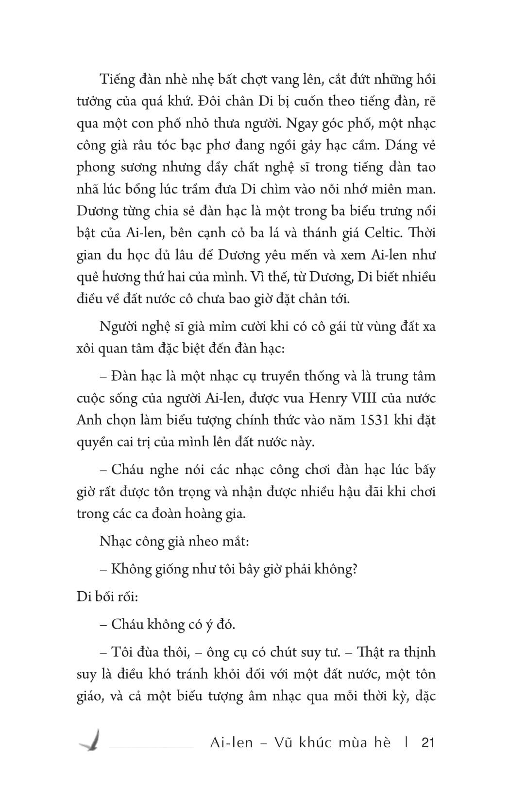 Để du khách có hai giờ tự do khám phá, Liam leo lên ngọn đồi, lướt mắt nhìn cảnh vật xung quanh và hướng ra hồ Glendalough. Đôi mắt anh bị hút bởi dáng ngồi cô đơn của Di ở ven hồ. Từ ngày quen Fiona, trái tim anh chưa bao giờ lỗi nhịp, dù công việc khiến anh luôn tiếp xúc với nhiều nữ du khách xinh đẹp, lắm tiền và đa dạng tính cách từ khắp nơi trên thế giới. Vậy mà giờ đây, anh lại có chút lưu tâm đến một cô gái không nhìn rõ mặt. Liam tự cười mình, có lẽ là chút tò mò mang tính nghề nghiệp, khi thấy một du khách bỏ tiền đi du lịch nhưng lại có vẻ hờ hững với mọi thứ xung quanh. Kinh nghiệm cho biết phần lớn là do tình cảm gây ra. Chỉ có tình cảm mới khiến con người đôi khi từ bỏ mọi thứ, buông bỏ bản thân. Có kẻ sống theo kiểu phá phách, trụy lạc; có người cố tìm quên trong công việc; có kẻ tự gặm nhấm nỗi đau; có người mạnh mẽ đối diện, quyết tâm thay đổi để sống tốt hơn mỗi ngày. Dường như cô gái kia đang ở vùng giao thoa của đối tượng 3 và 4, cố vượt qua nhưng bị hồi ức kìm chế. Còn anh, anh đang ở đâu?