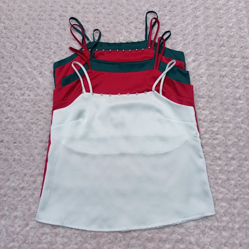 ✨Áo hai dây nữ đính ngọc trai xinh xắn mặc trong blazer/vest, chất lụa satin mịn, mát - AO0025