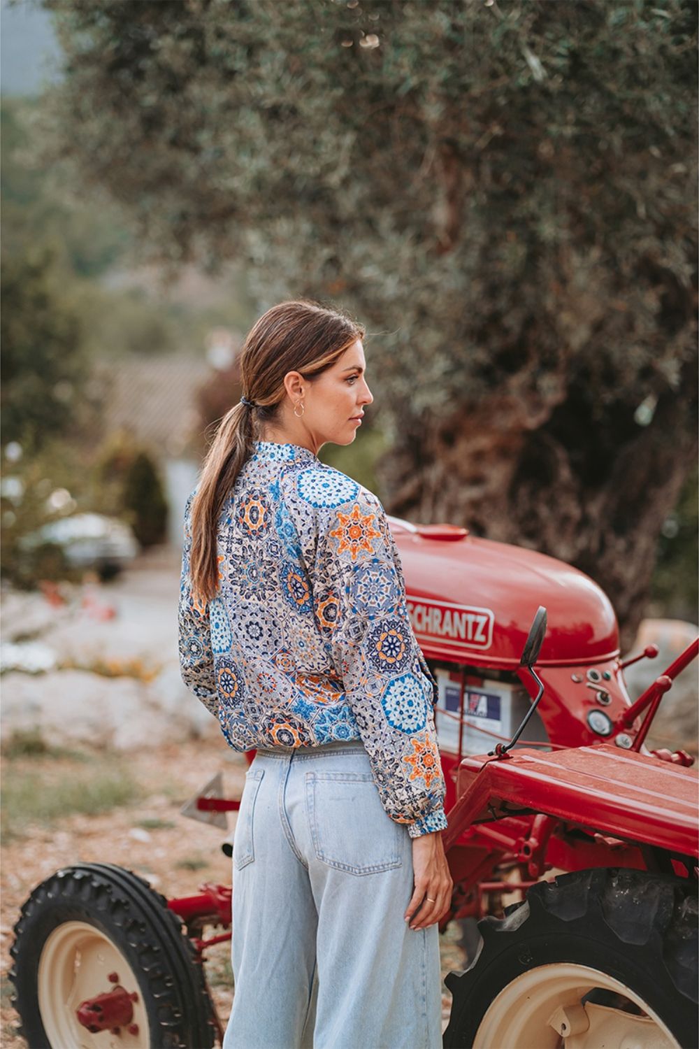 Áo Khoác Isla Bonita, kiểu áo choàng thu đông, không nút cài, họa tiết thổ cẩm độc đáo. Chất vải gống vải bố. Freestyle. Dài áo thân trước 65cm, thân sau 85cm (50x85cm)Phù hợp đi