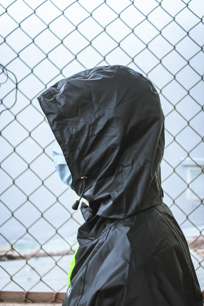 Thiết kế Nón trùm đầu rời và Phản quang an toàn Sau lưng áo được in dãy phản quang nhằm giúp người mặc di chuyển an toàn hơn khi đi lúc trời tối. Màng nhựa