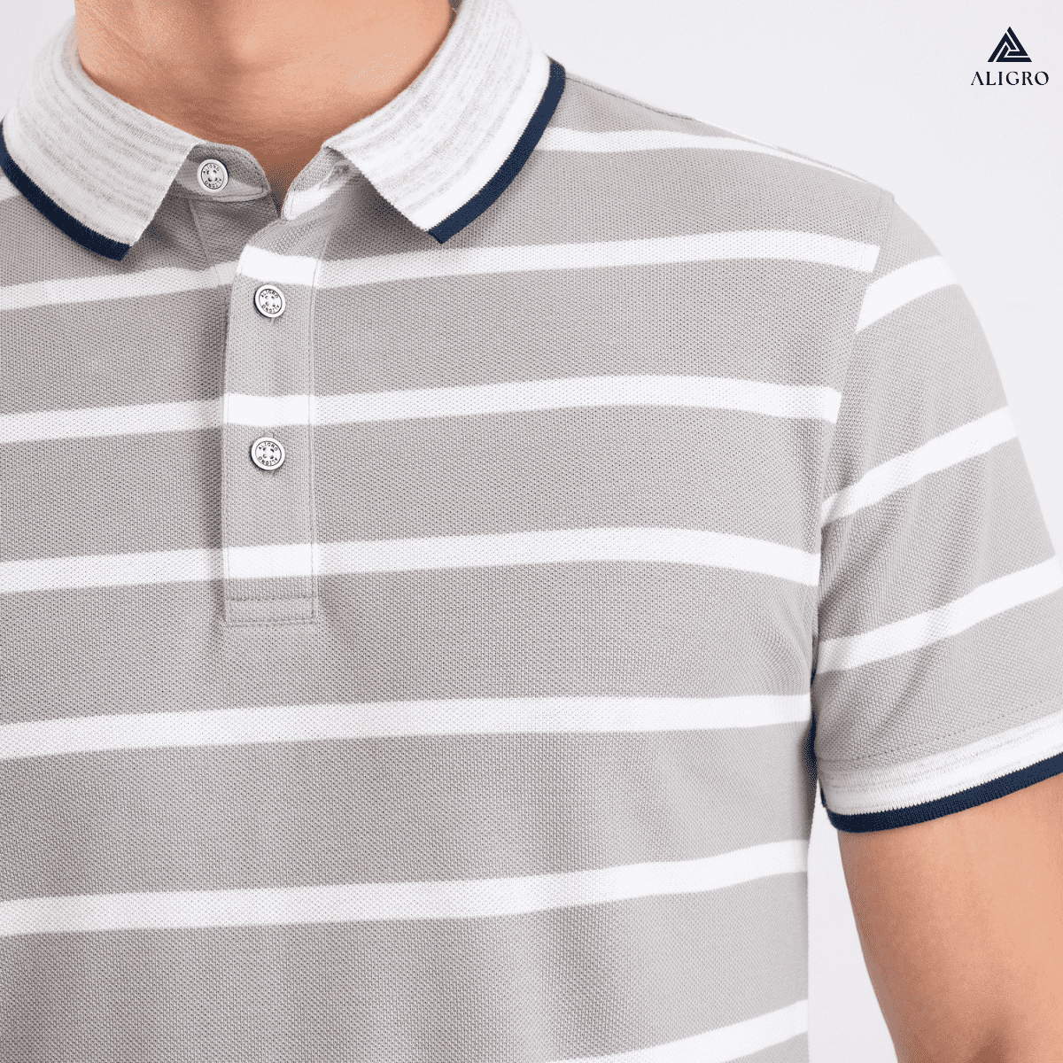 ✨Áo Polo nam ngắn tay kẻ ngang ghi-trắng ALGPLO89