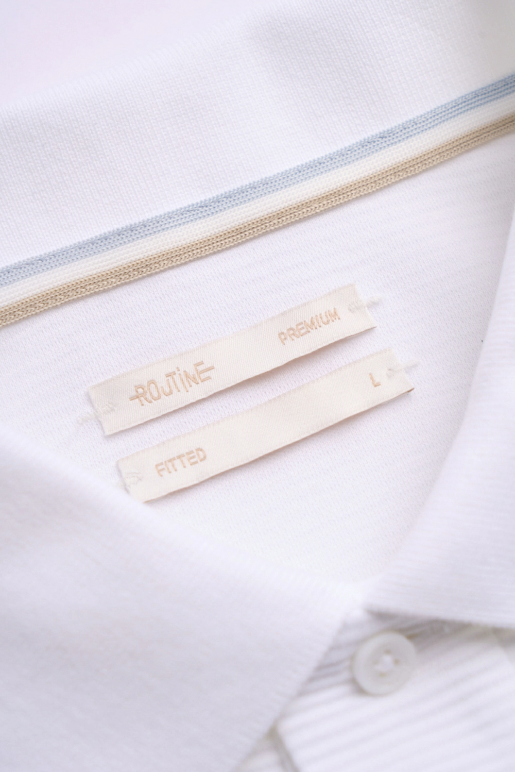 Áo polo tay ngắn nam vải gân phối tape. Fitted - RT 10S25POL003P | ROUTINE CÀ MAU Đặc điểm nổi bật Form : Fitted Fabric : Jacquard Gender: Nam Kiểu tay: Tay ngắn Collection: Together