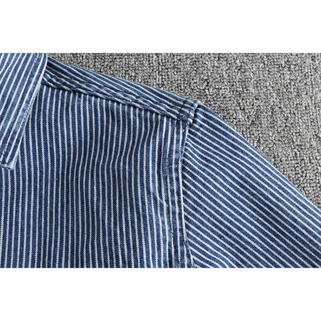 Áo sơ mi denim sọc phong cách Retro_Biker_Army