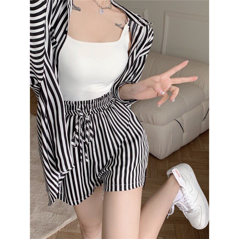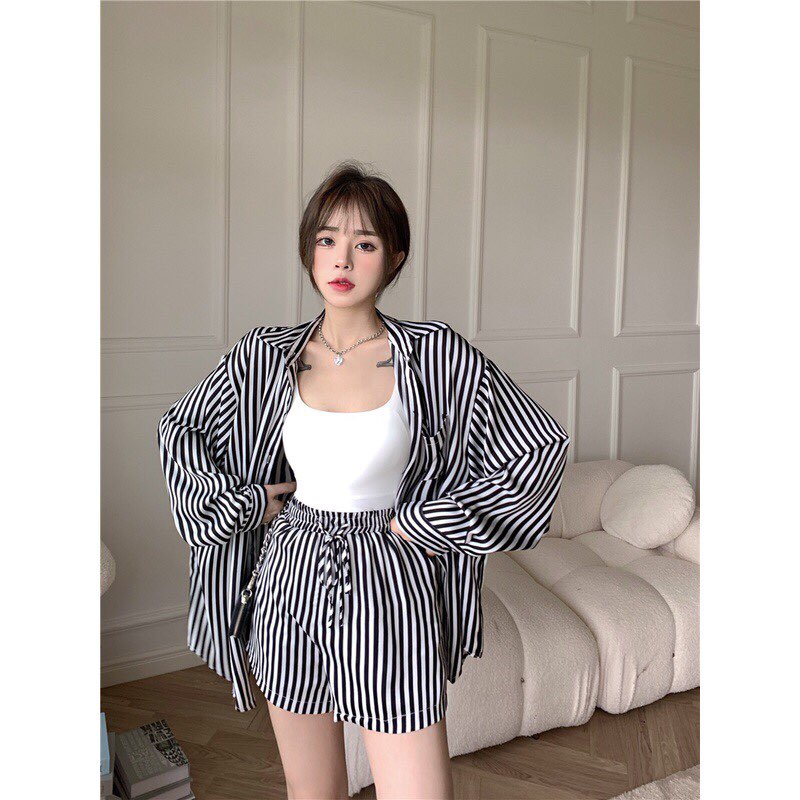 ✨Áo sơ mi kẻ thời trang dáng dài rộng phong cách Hàn Quốc