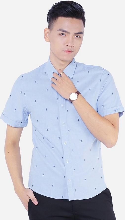 Áo SƠ MI NAM CỘC TAY HỌA TIẾT XANH ALIGRO ALGS-C88