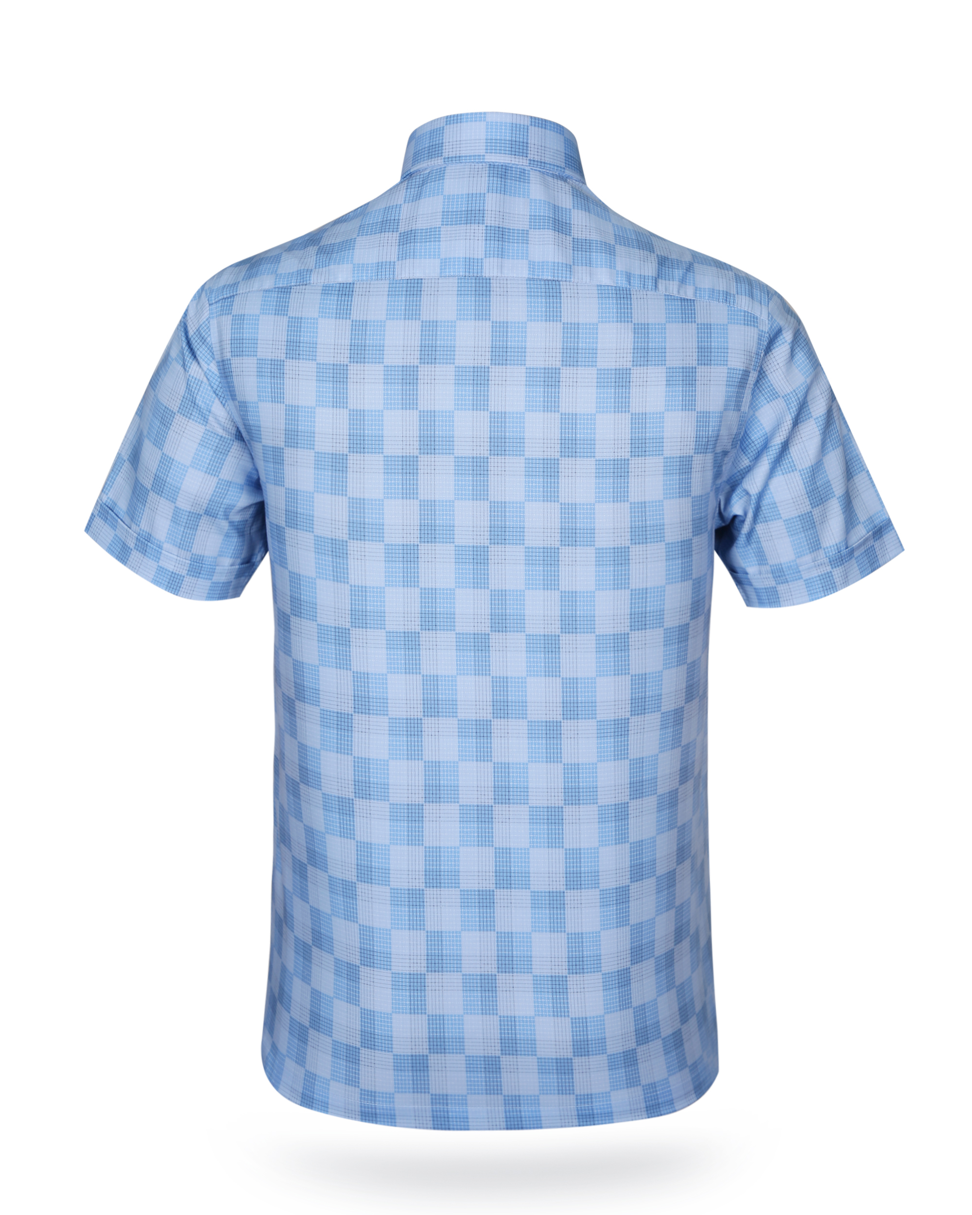 Áo sơ mi nam tay ngắn lai ngang – Khatoco - Mã hàng: A1MN538T2 - Chất liệu: 75% Polyester + 22% Viscose (Bamboo) + 3% Spandex → Vải mềm mại, thoáng mát, co giãn nhẹ,