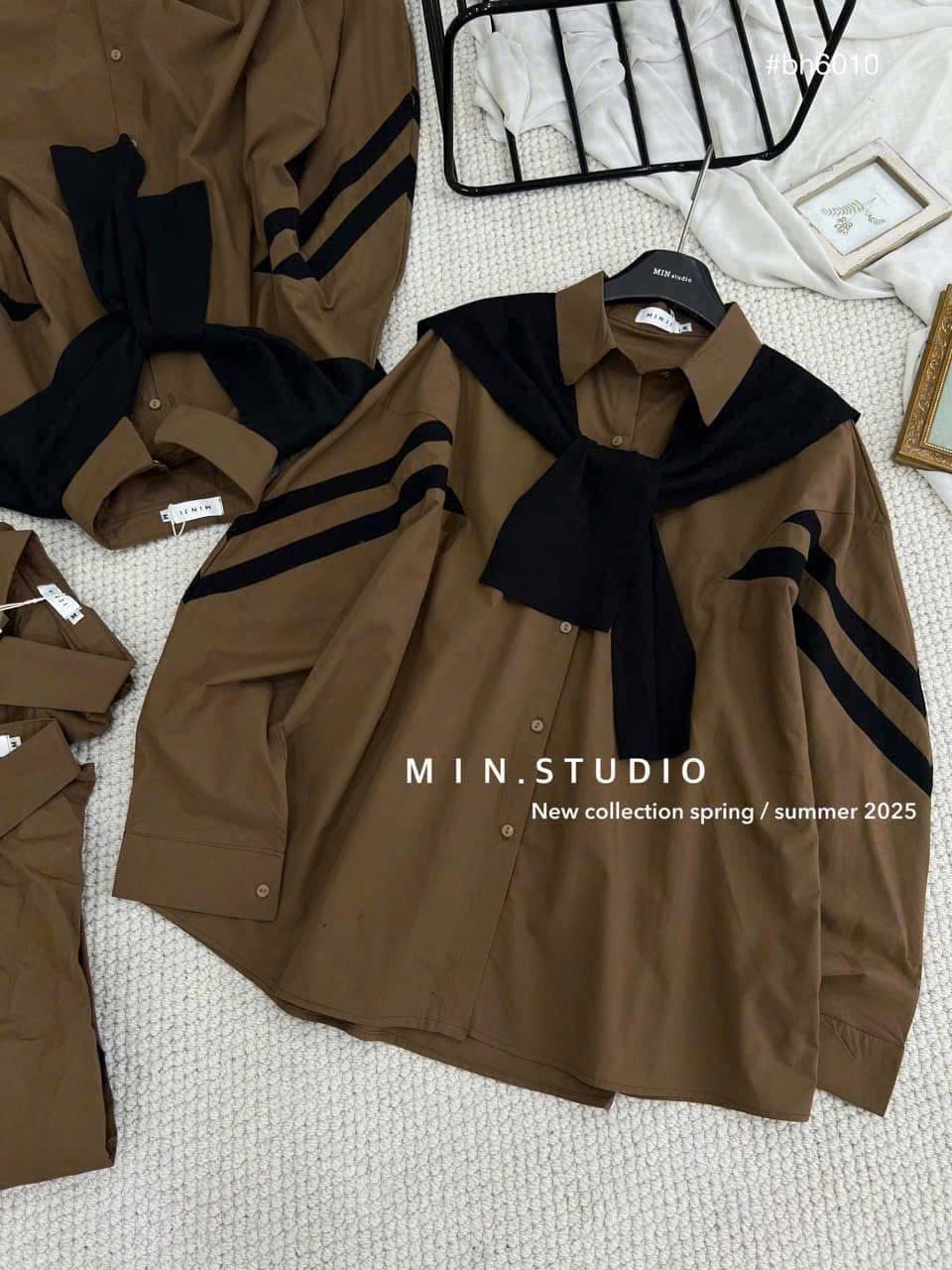 ✨Áo sơ mi thô tay dài nâu kèm khăn siêu HOT