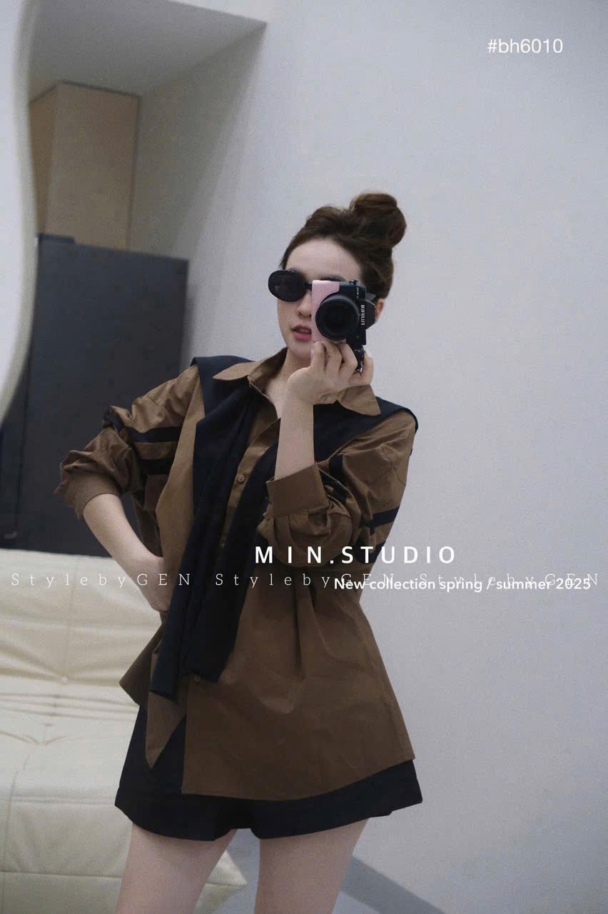 Mua tại TiktokÁo sơ mi thô tay dài nâu kèm khăn siêu HOT