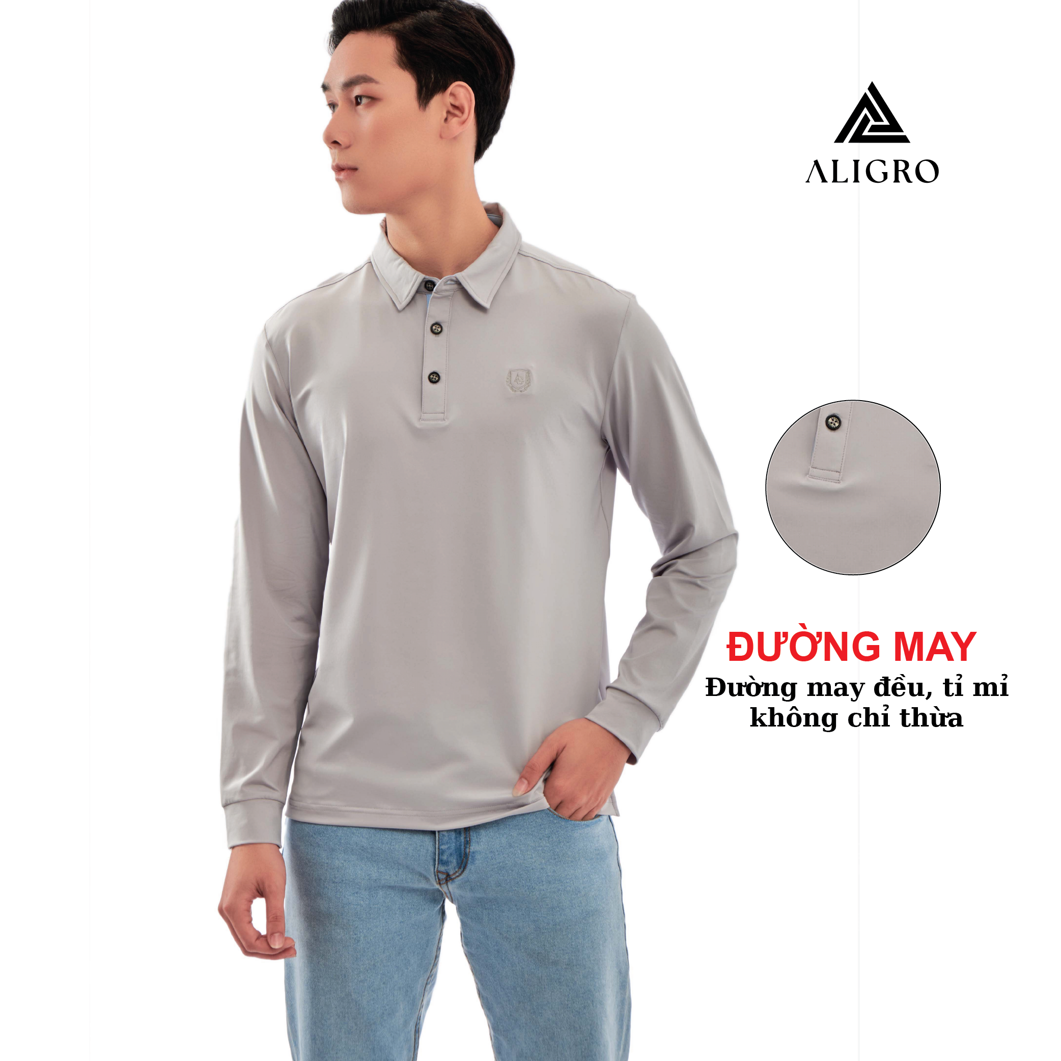 ✨Áo thun nam dài tay ALIGRO chất cotton thấm hút mồ hôi, mềm mại màu ghi ALGAPD051