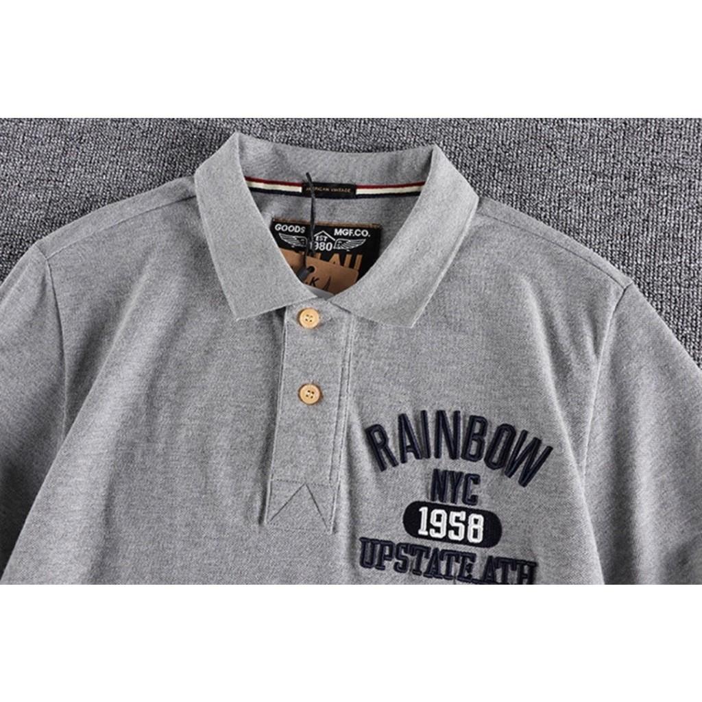 Áo thun polo Rainbow phong cách Vinstage Áo thun nam này có chất vải 100% cotton thoáng mát, tạo cảm giác thoải mái khi mặc. Trên ngực áo có biểu tưởng logo Rainbow. Chiếc Áo